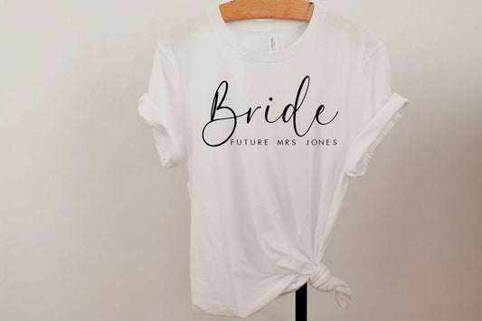 Cute Future Mrs T Shirt with Gold - Custom Made Personalised Engagement Present for Your Best Friend