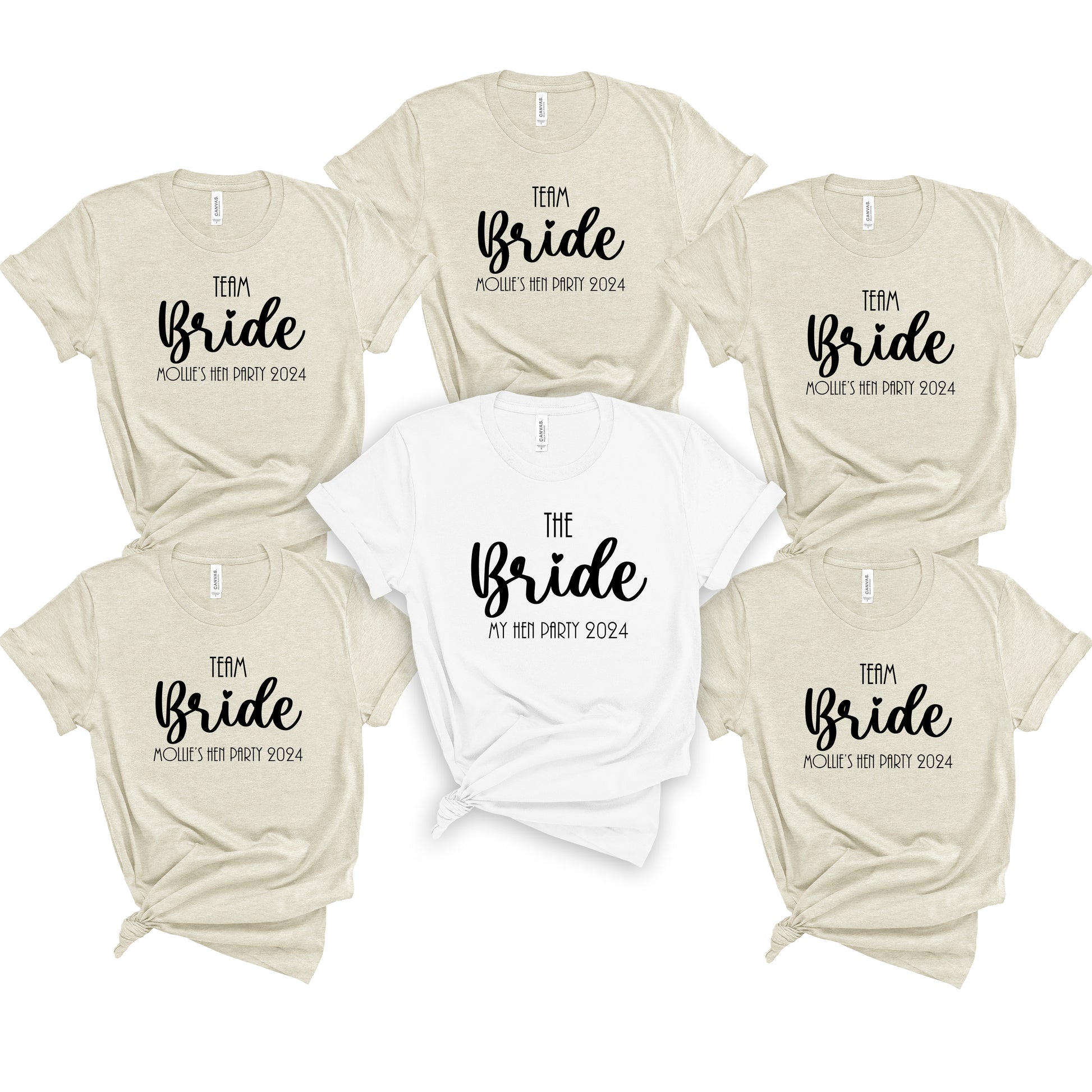 hen party t-shirts, bachelorette party shirts, bride squad shirts, personalized hen night shirts, bridal crew tees, matching party shirts, custom bride tribe shirts, fun group t-shirts, wedding party apparel, team bride shirts, party trip outfits, unique bridal party tees, bride celebration shirts