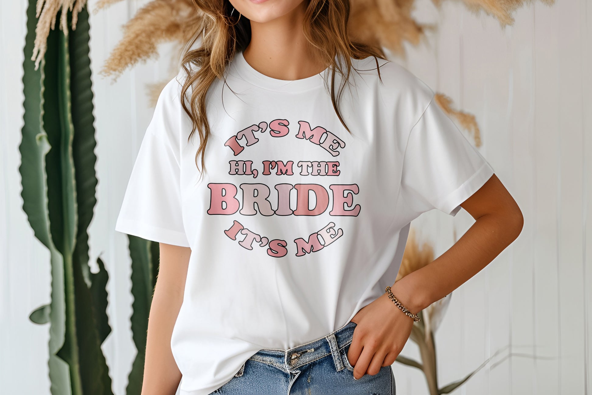 Calling all Swifties! Let everyone know who's in their Bride Era with this playful "Hi, It's Me, I'm The Bride, It's Me" t-shirt. Perfect for Swift-inspired hen parties, bachelorette weekends, or bridal celebrations, this trendy oversized tee combines a fun retro design with a chic pink palette.