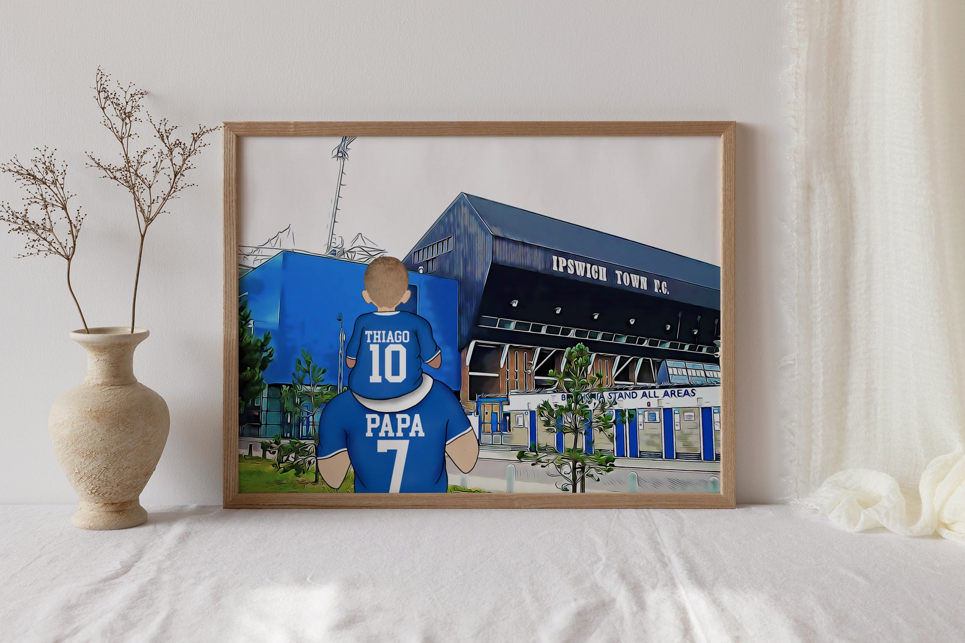 Ipswich Football Team Stadium Print – Personalised Family Artwork for Dad