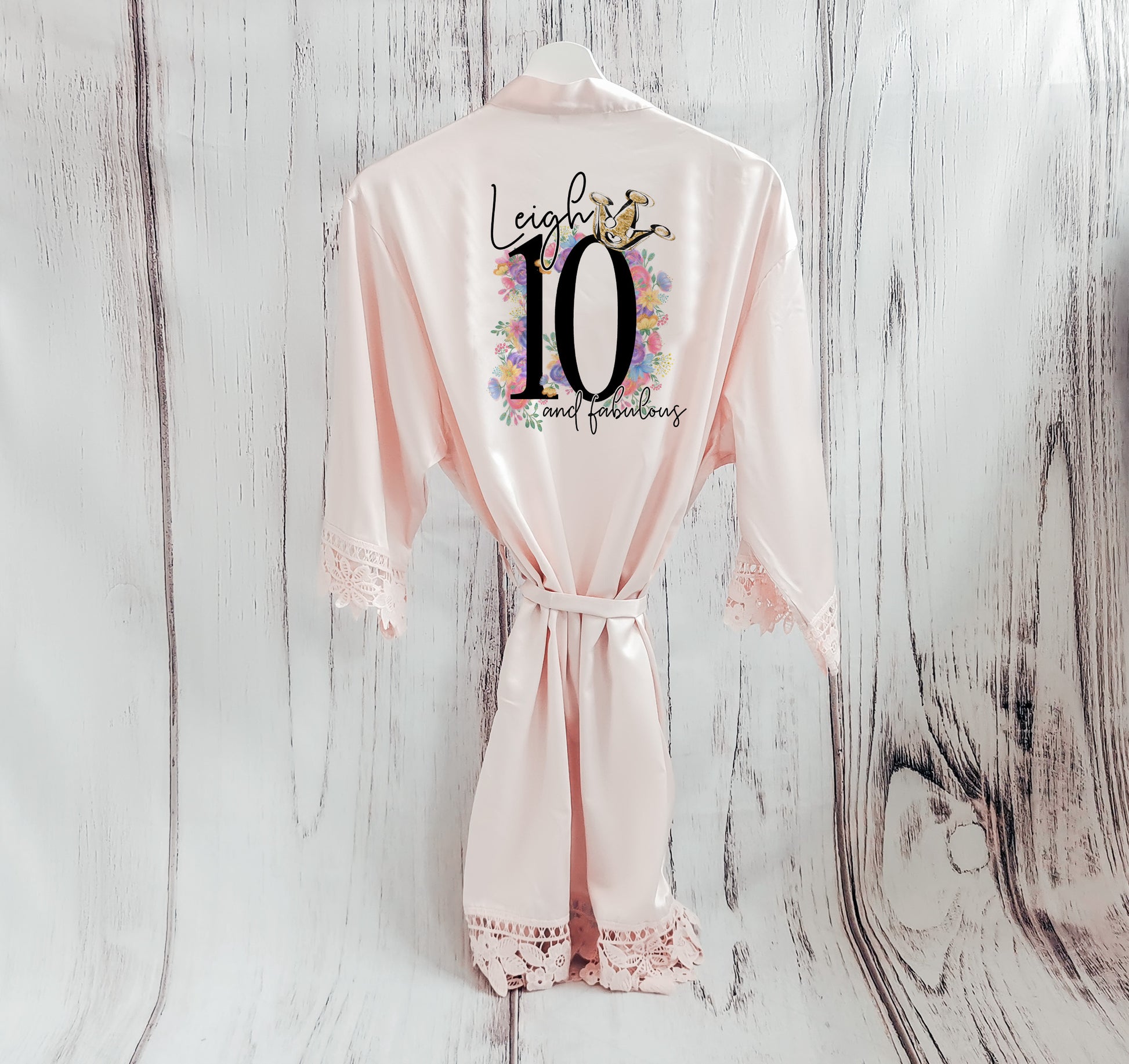 10th birthday robe, personalised birthday robe, kids birthday gift, girls birthday robe, custom name robe, satin birthday robe, birthday sleepover outfit, slumber party robe, birthday girl gift, customised kids robe, personalised sleepwear, satin lace robe, birthday pyjama set, girls nightwear, milestone birthday gift, birthday celebration outfit, luxury kids robe, birthday dressing gown, birthday gift for her, 10th birthday outfit