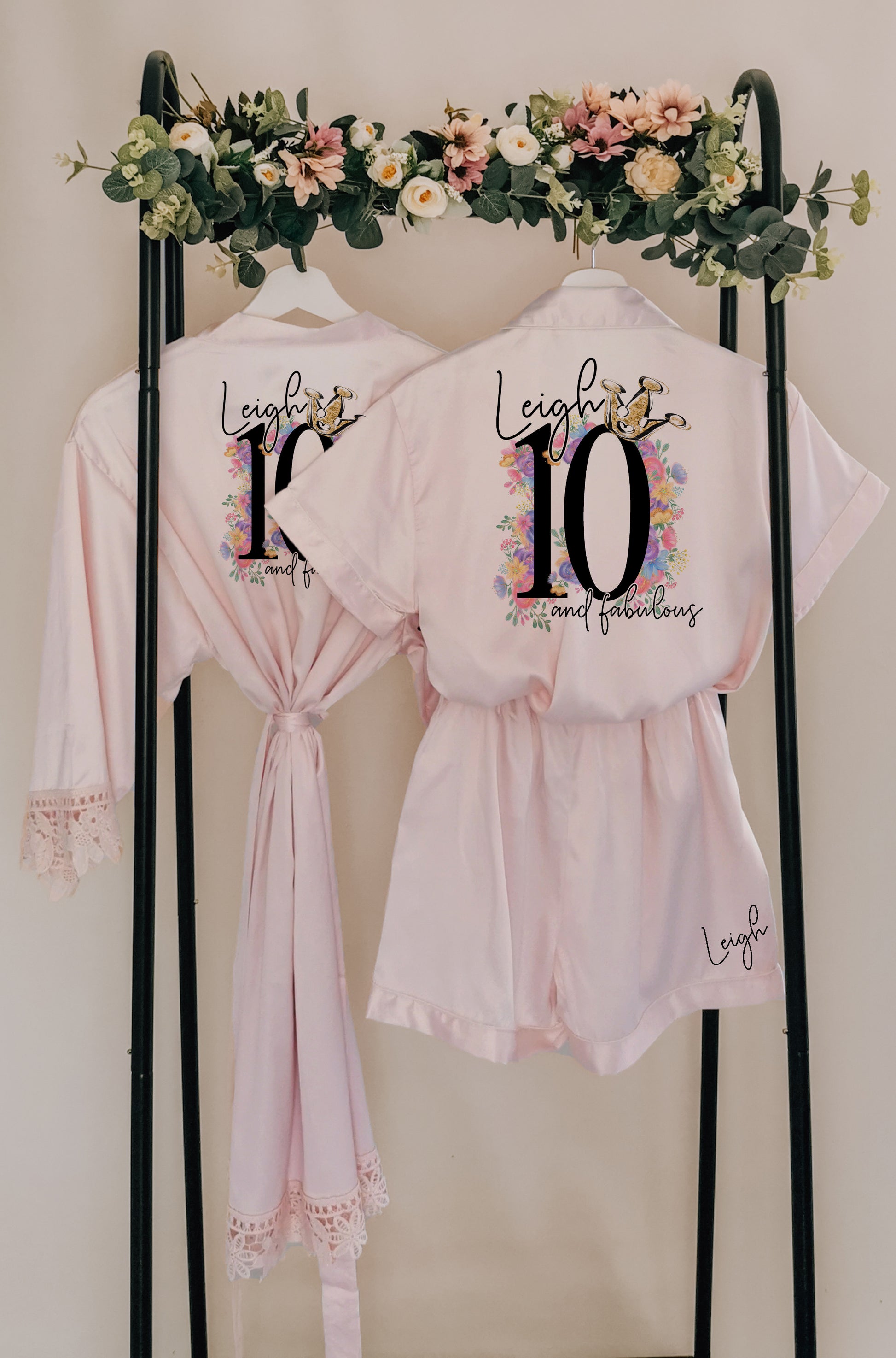 10th birthday robe, personalised birthday robe, kids birthday gift, girls birthday robe, custom name robe, satin birthday robe, birthday sleepover outfit, slumber party robe, birthday girl gift, customised kids robe, personalised sleepwear, satin lace robe, birthday pyjama set, girls nightwear, milestone birthday gift, birthday celebration outfit, luxury kids robe, birthday dressing gown, birthday gift for her, 10th birthday outfit