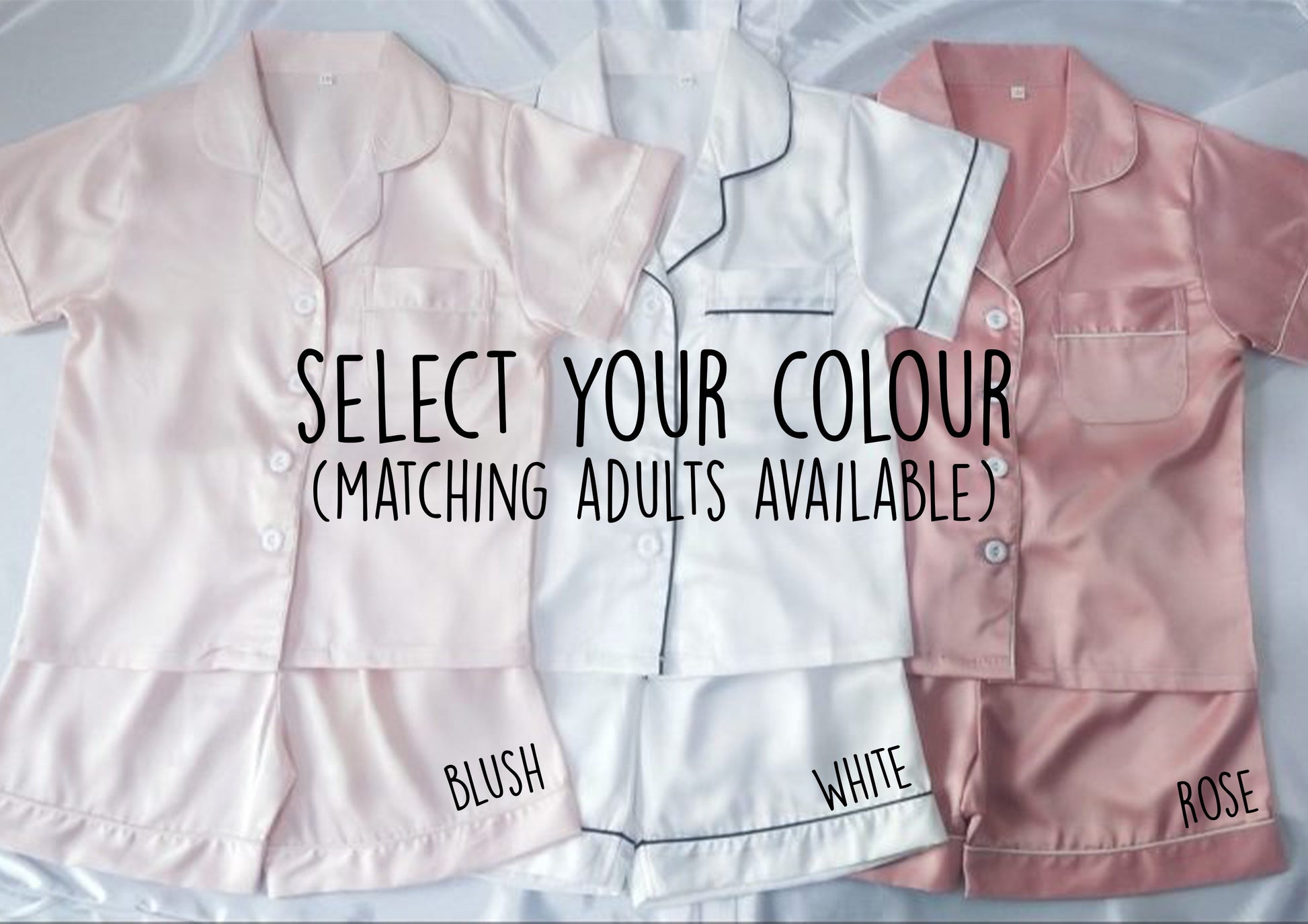 - Pyjama Sets: Includes a button-up shirt with elasticated waist shorts/trousers, personalized with your chosen text.