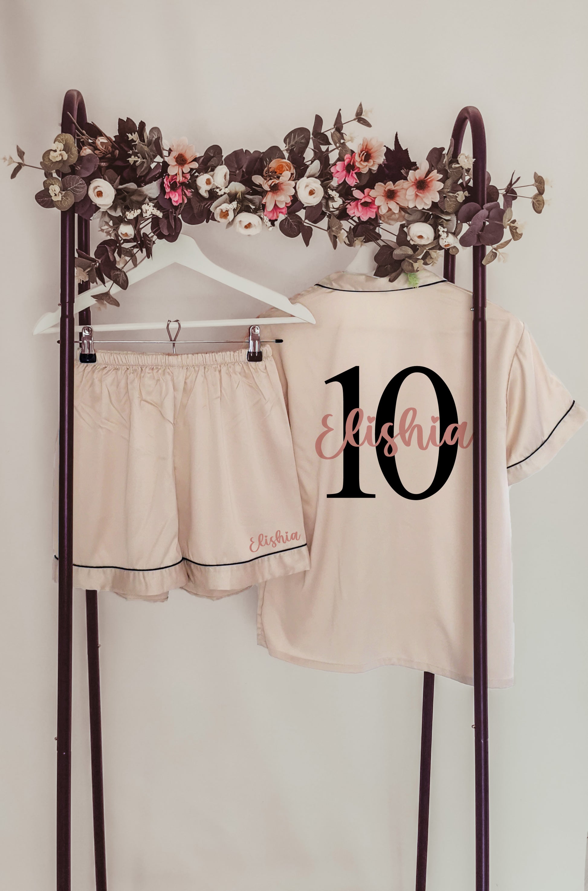 - Pyjama Sets: Includes a button-up shirt with elasticated waist shorts/trousers, personalized with your chosen text.