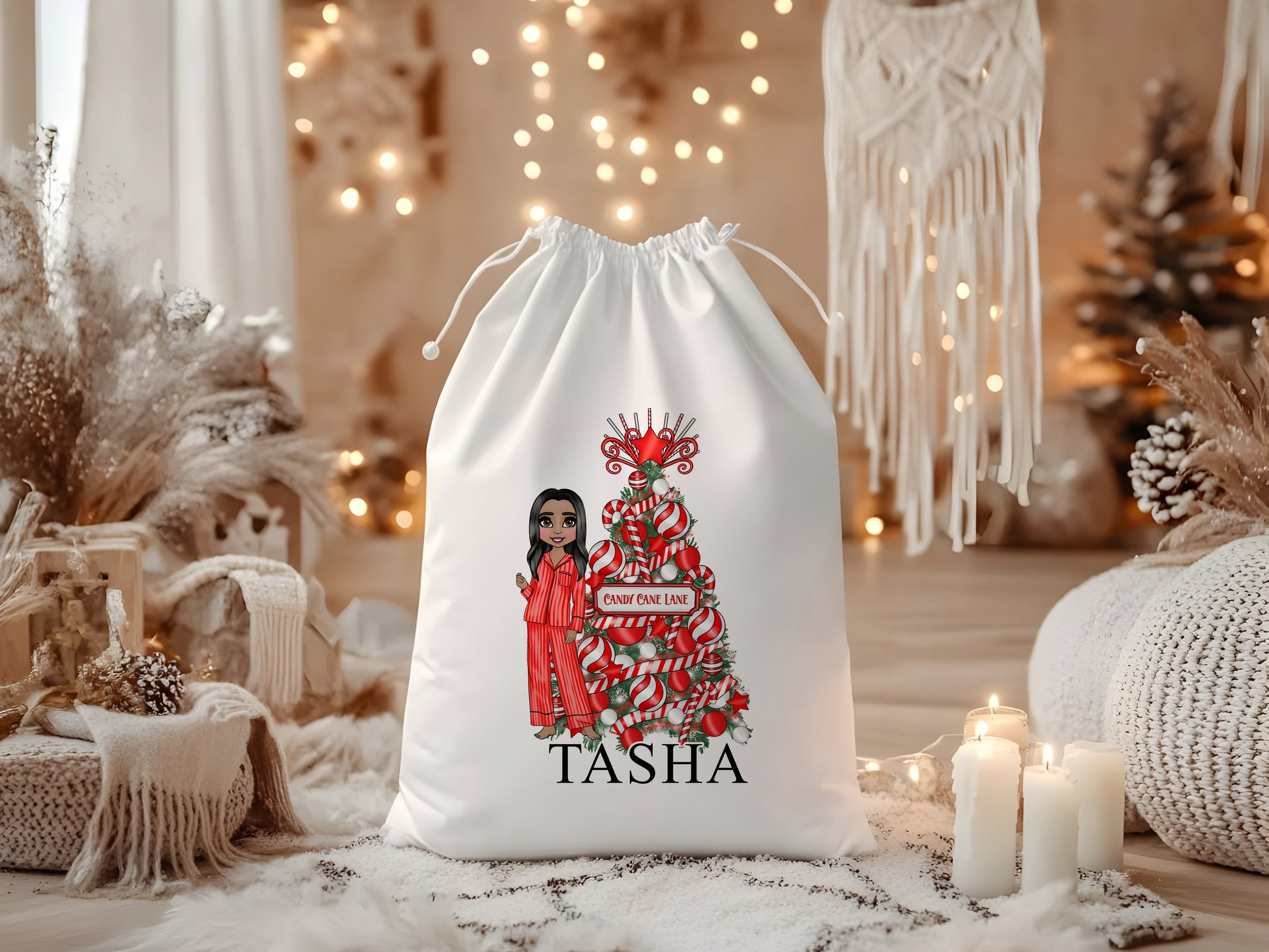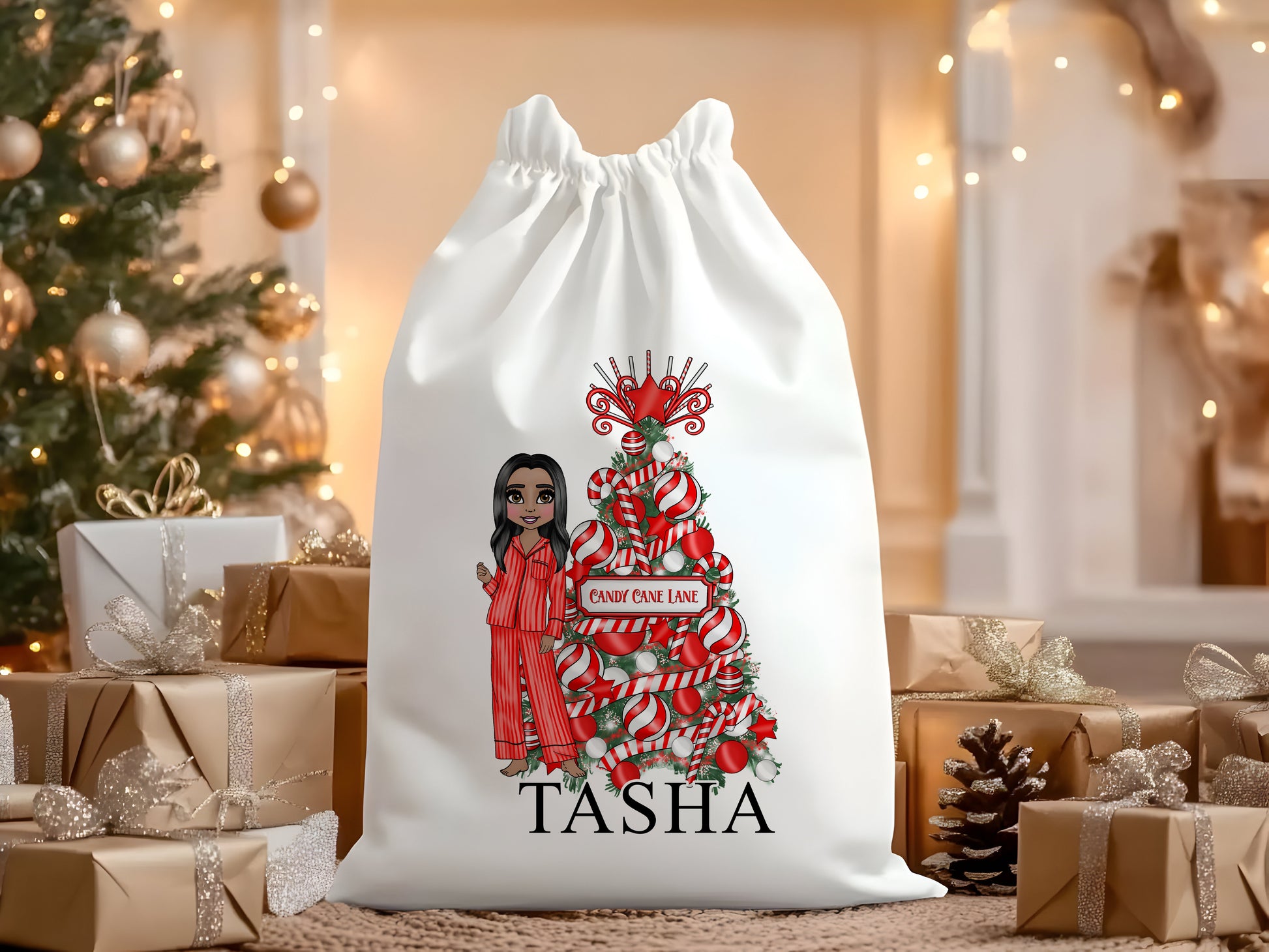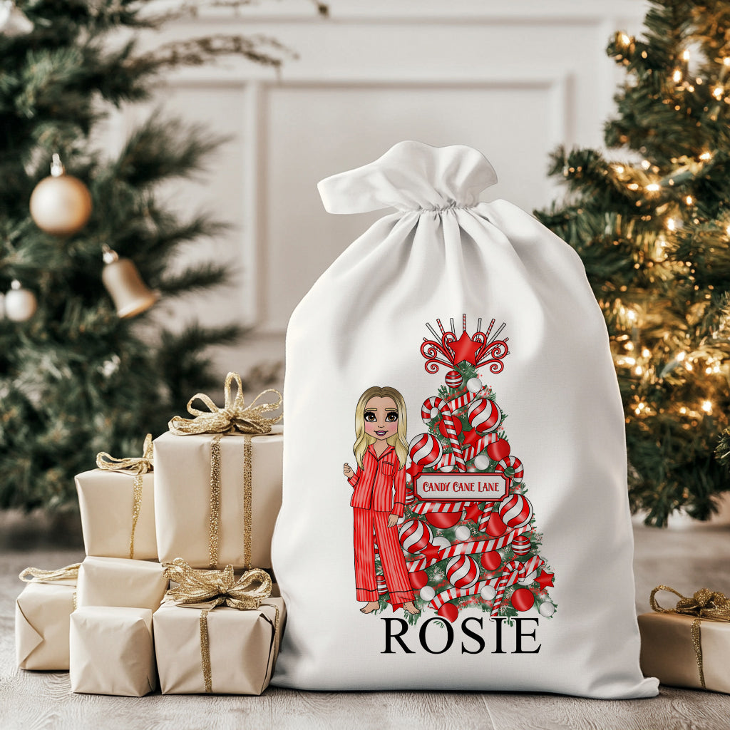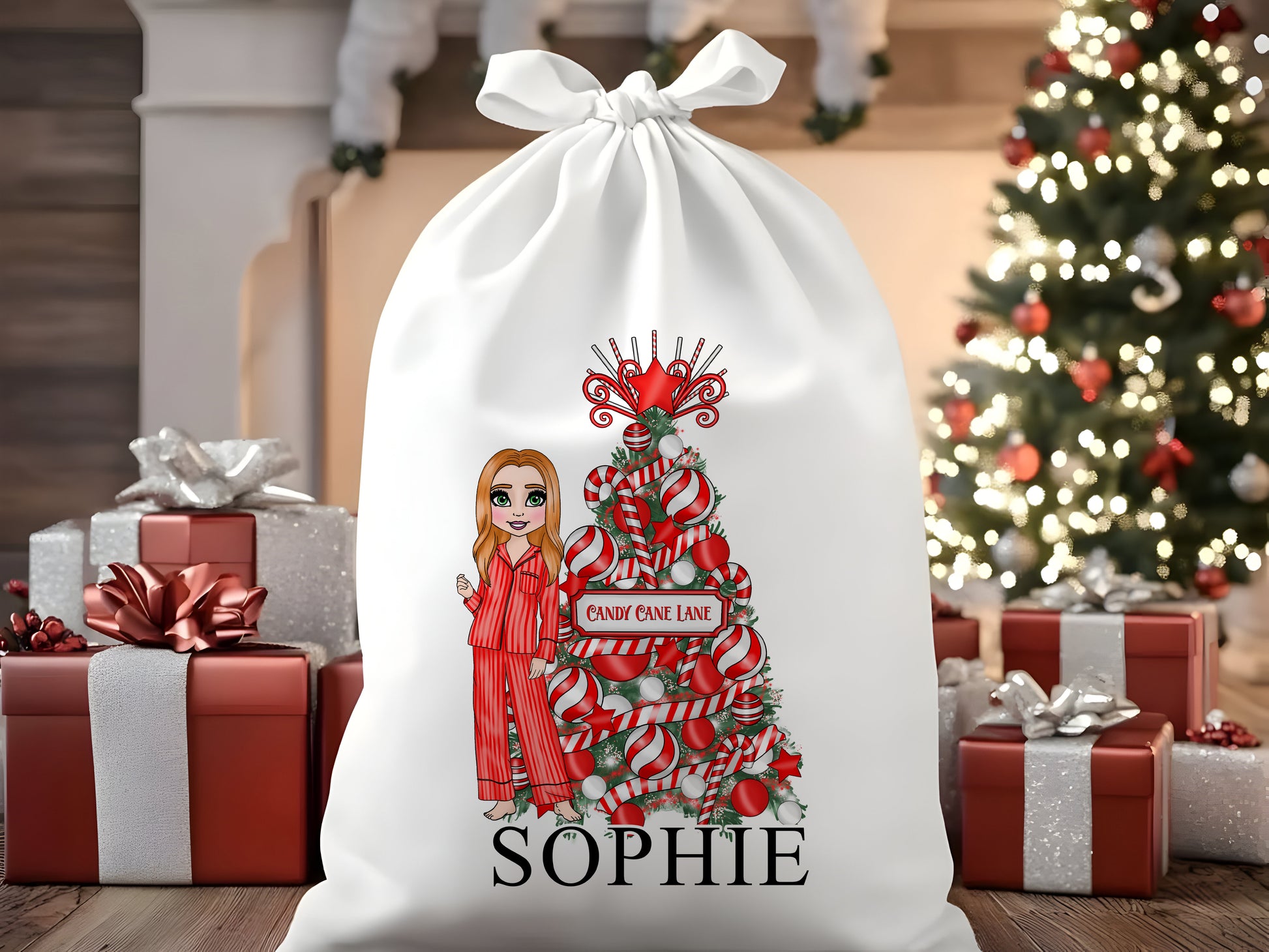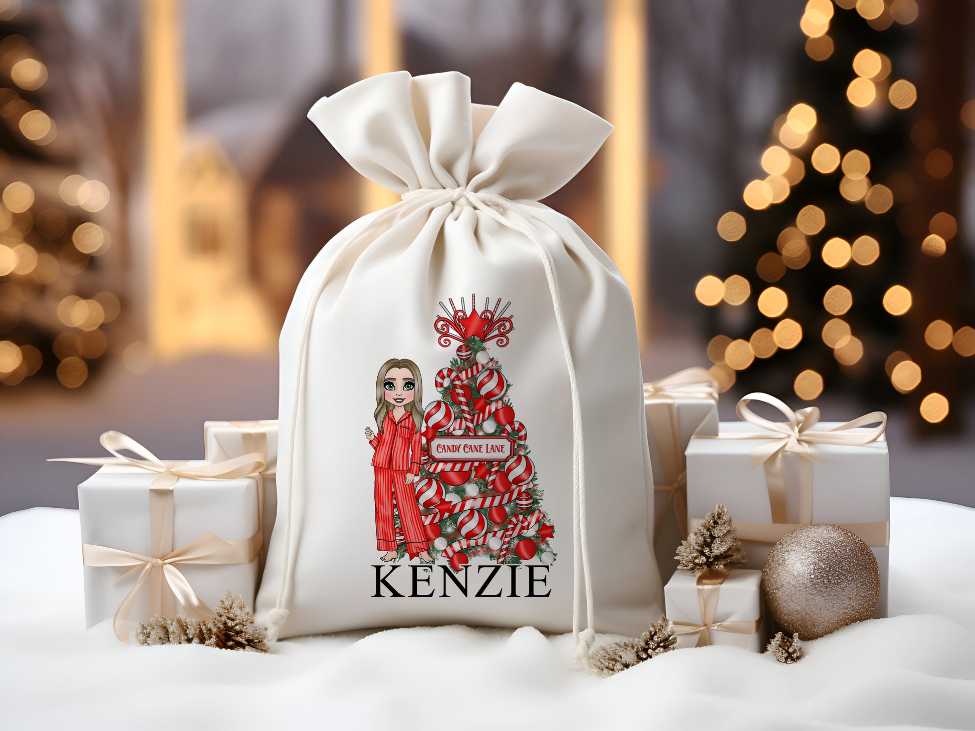 Add a magical touch to your Christmas with this personalised festive gift bag, perfect for making your presents even more special. Featuring a charming Candy Cane Lane design, this bag is customised just for you! Include your name, hair and eye colour, and skin tone in the personalisation box to create a truly unique keepsake.