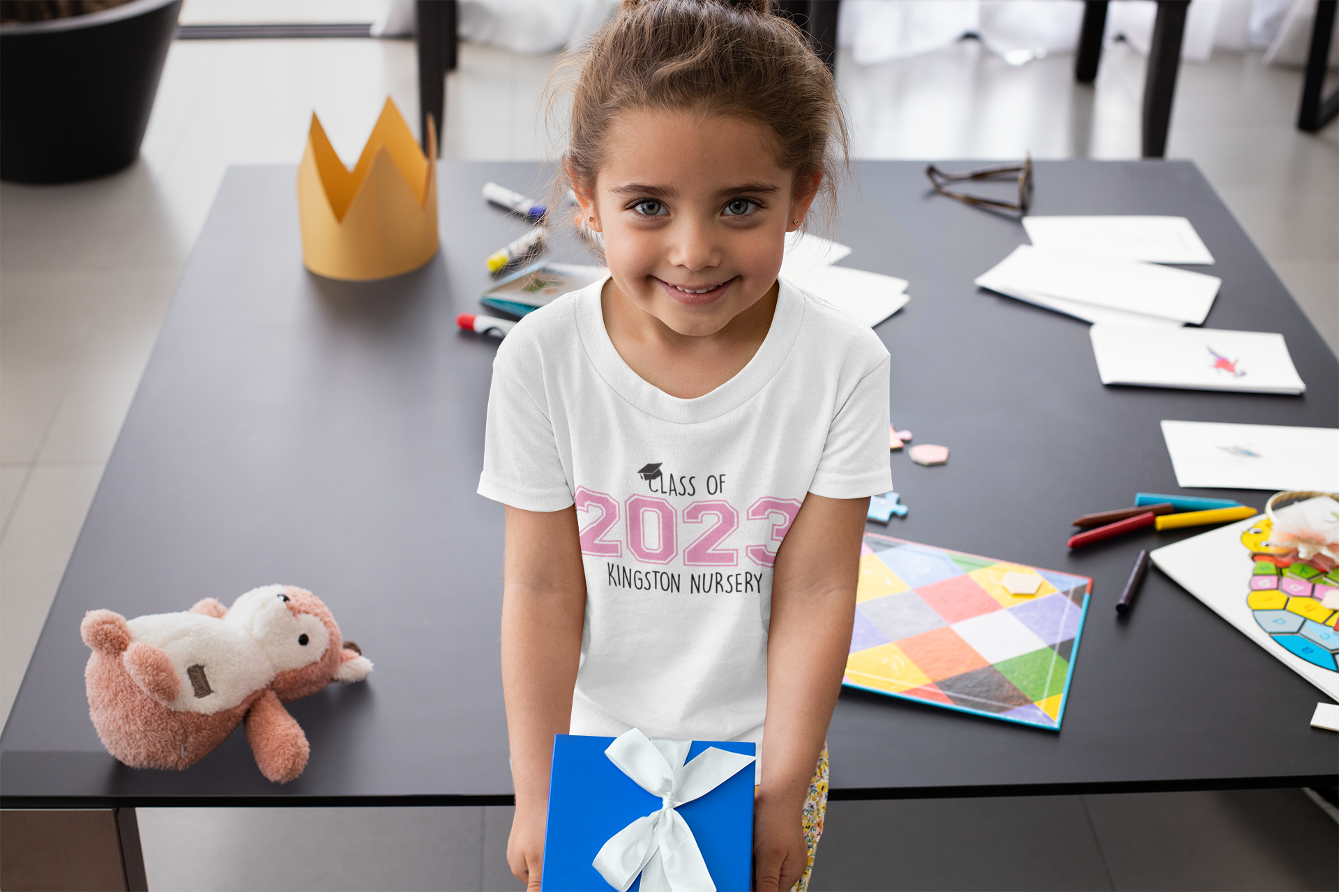 Celebrate your little one's special day with a Personalised Nursery Graduation TShirt. Our cute keepsake tshirt is made of soft cotton, perfect for your pre-schooler's big day. Make their graduation day extra special with this personalized tshirt. Your child will remember it forever!