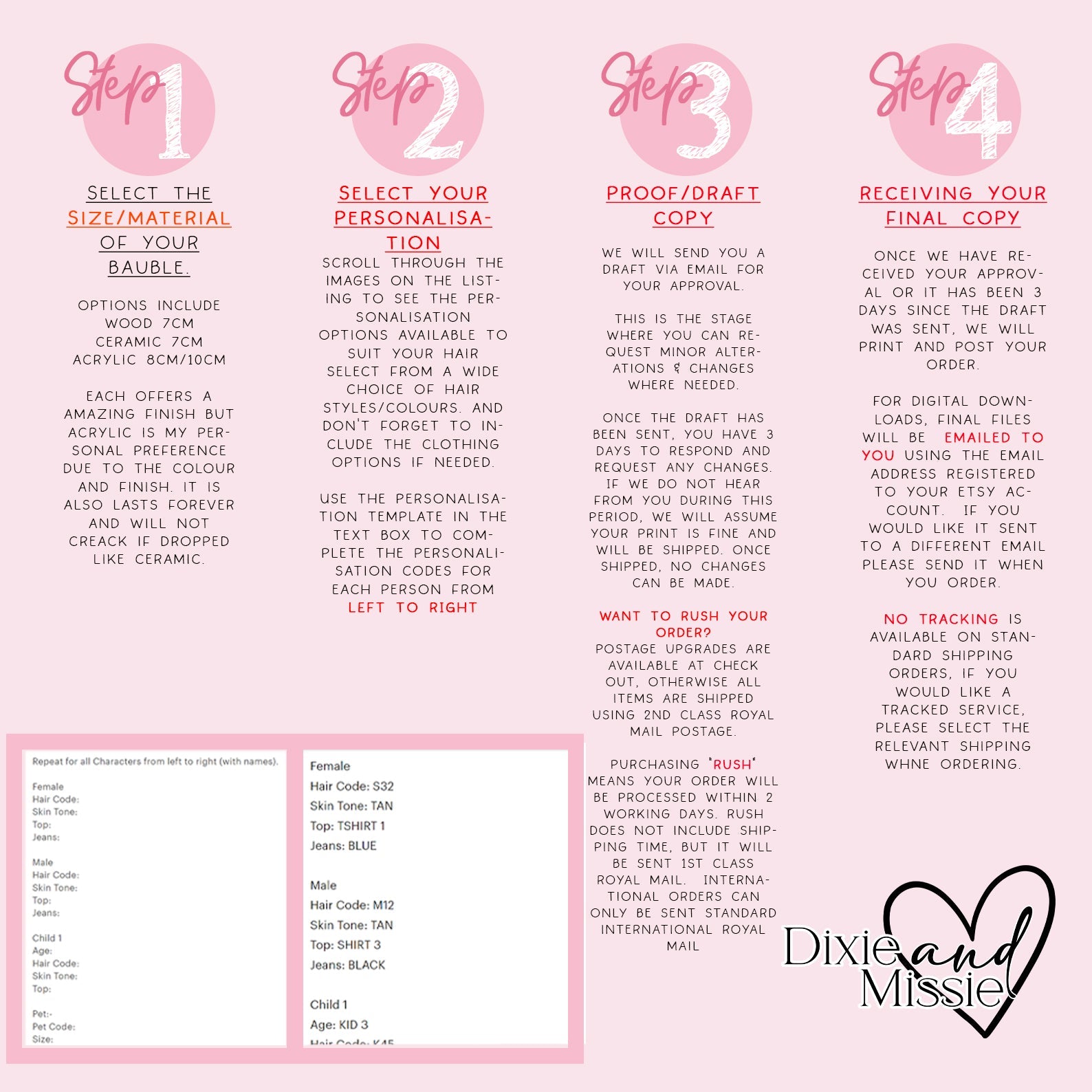 Simply choose your preferred material and size, and select from our wide range of hairstyles and jumpers. Each bauble is crafted with exceptional care and attention to detail, making it a cherished keepsake for you and your partner.