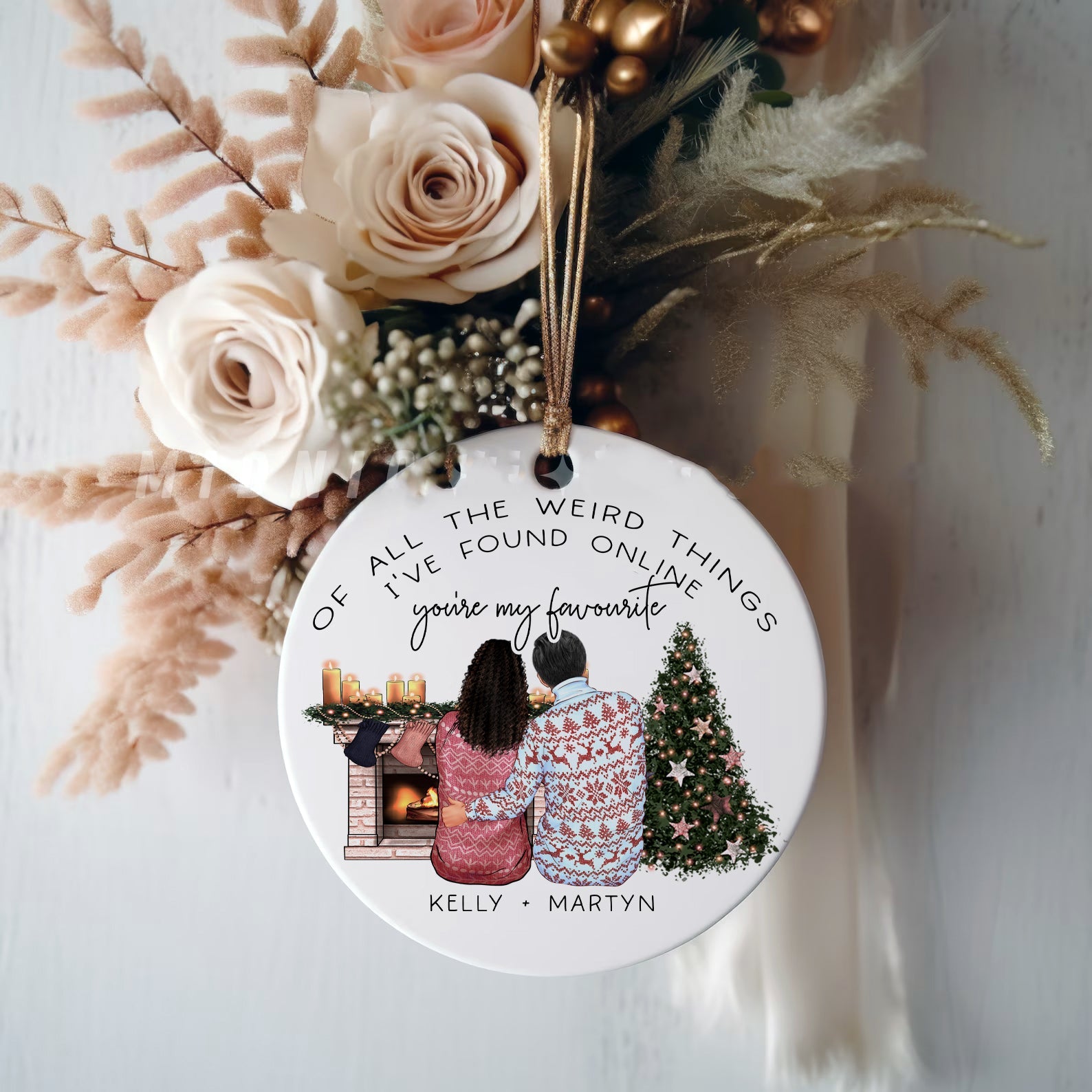 Funny Boyfriend Girlfriend Christmas Tree Bauble - "Of All The Weird Things I Found Online, You're My Favourite"