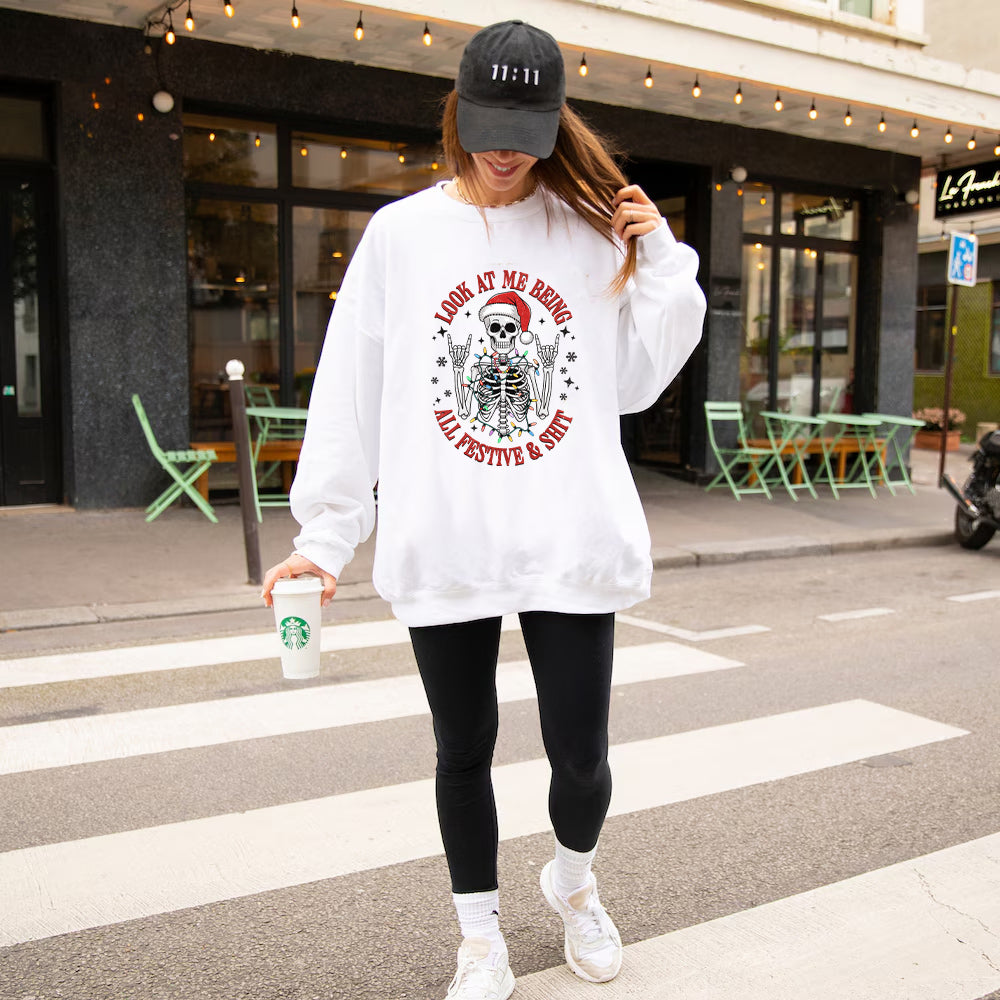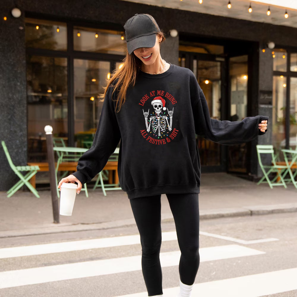 All Festive and Shit Christmas Jumper, Funny and Rude Skeleton Christmas Jumper Day Outfit