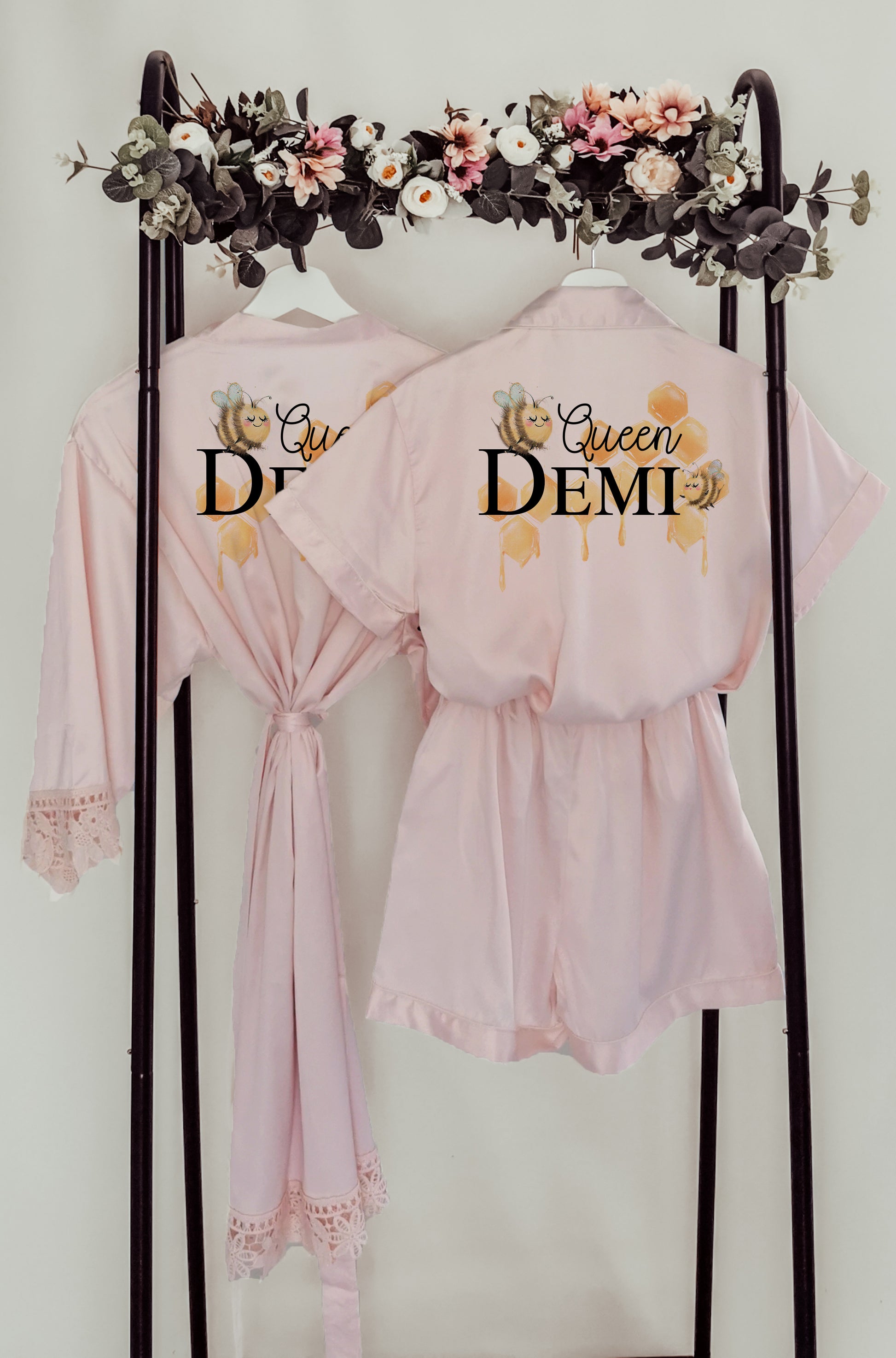 Indulge her in the luxury of personalised Queen Bee Pyjamas, adorned with a beautiful hand drawn design and her very own name! Soft and comfortable satin in gorgeous blush, dusky rose, white or champagne make for the perfect girls sleepover. Let her be the queen of style! She'll love being the star of the show and looking ultimate girlie!