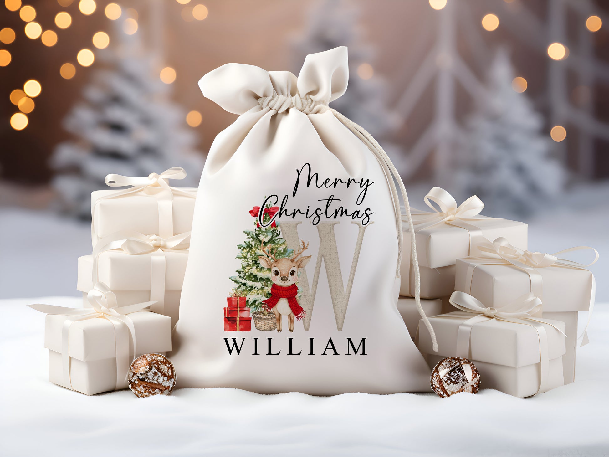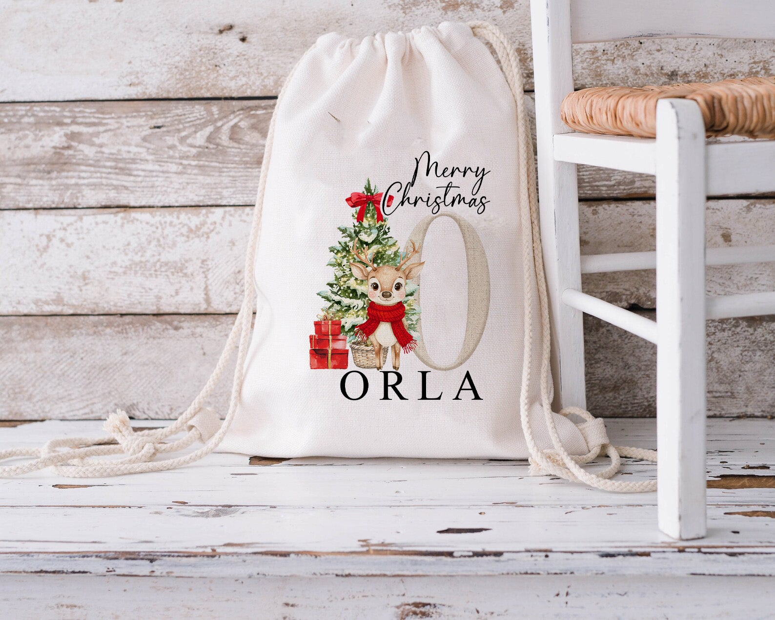 Cute Reindeer Personalised Santa Sack, Traditional Christmas Eve Treats Bag