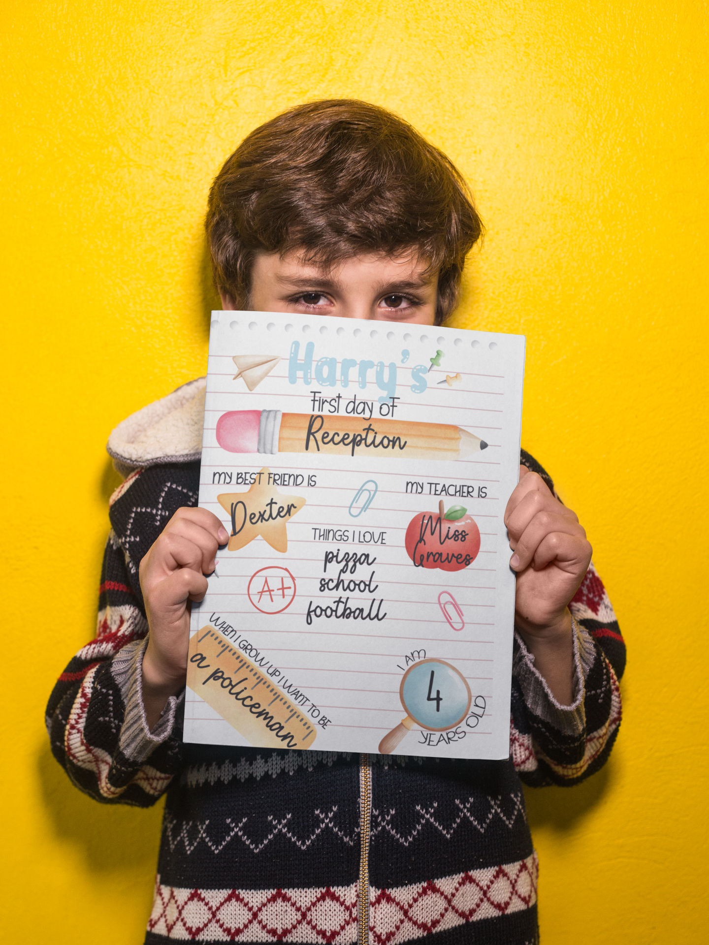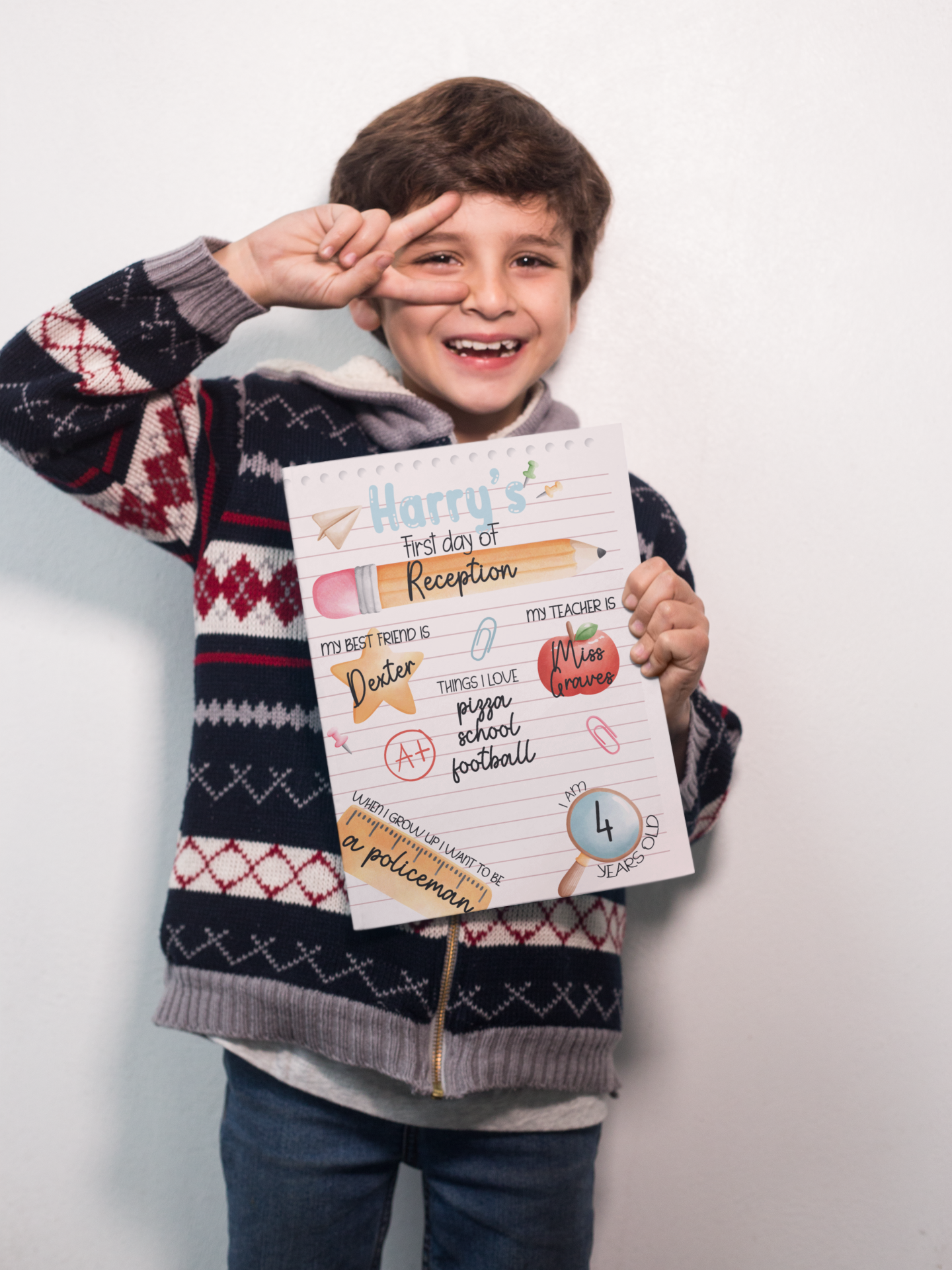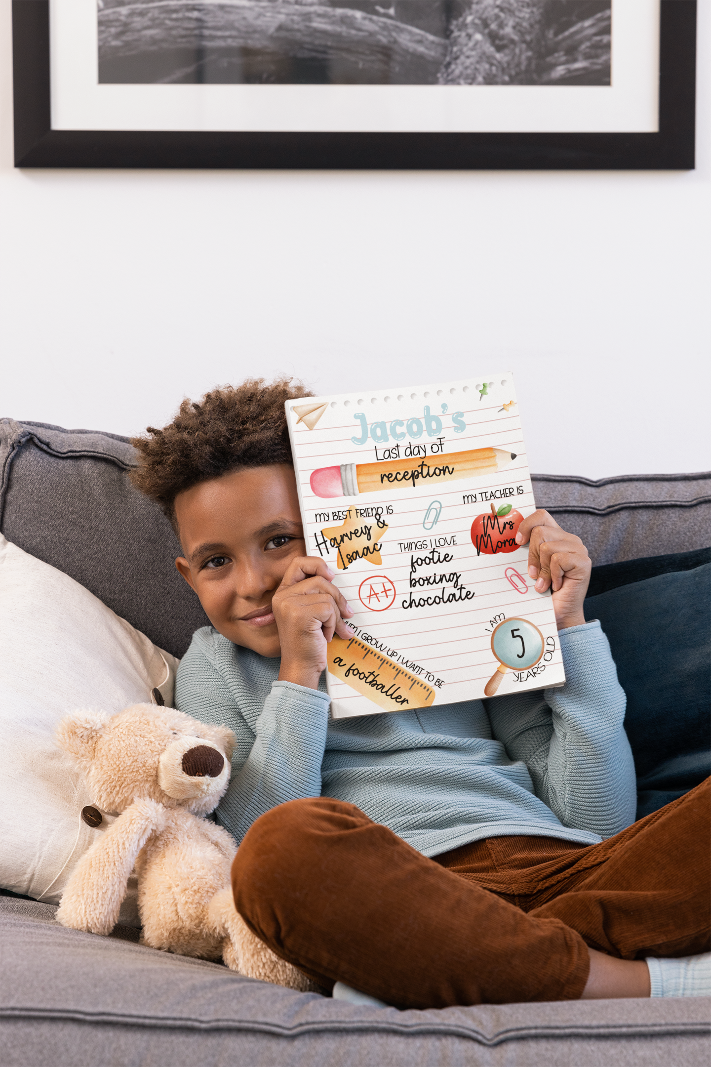 Capture your child's growth with the First(or last) Day Of School White Board! This glossy mat with an exciting 'My First Day' graphic is designed to be used over and over again, letting you take a photo each year of your child on their first day of school and watch them grow.