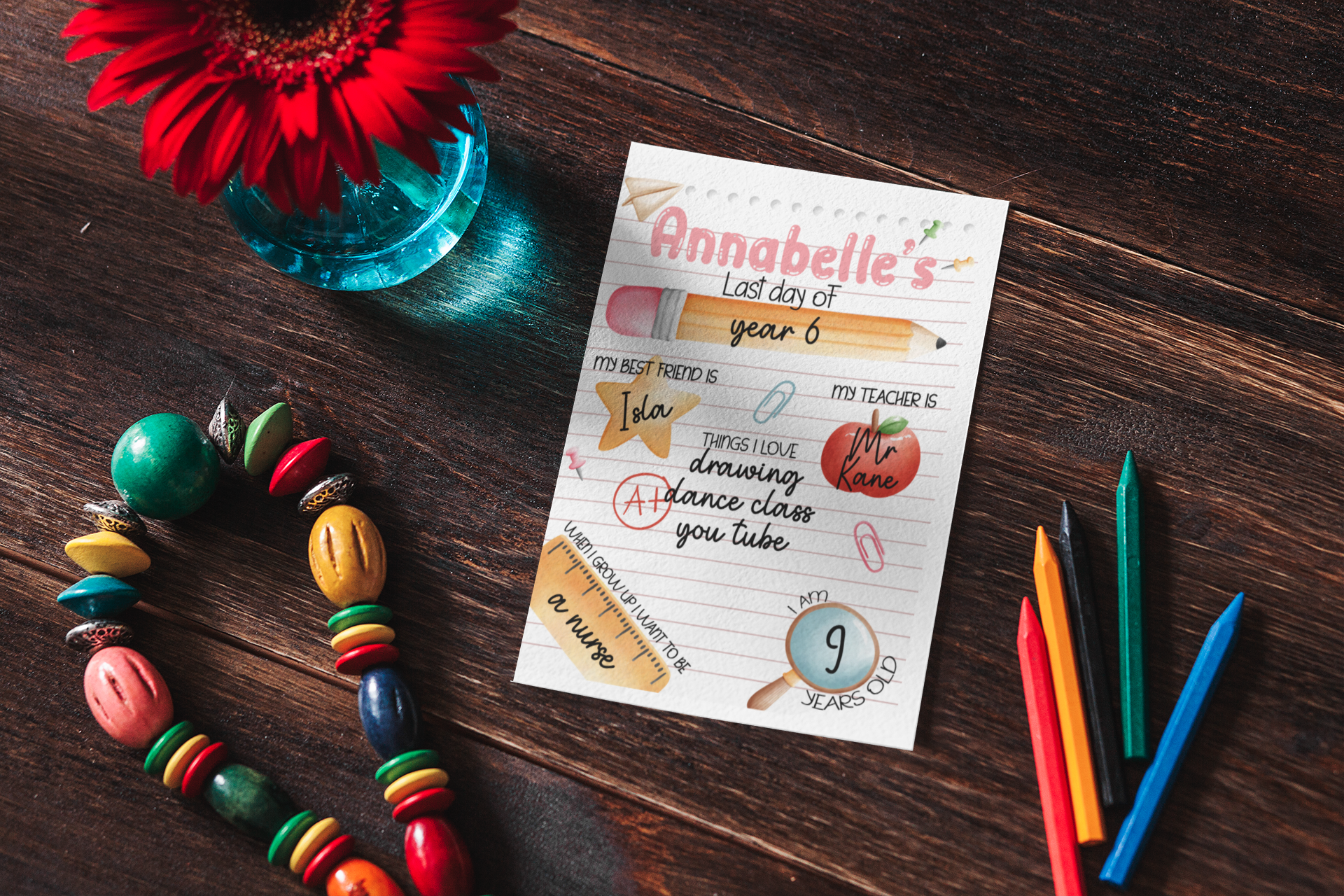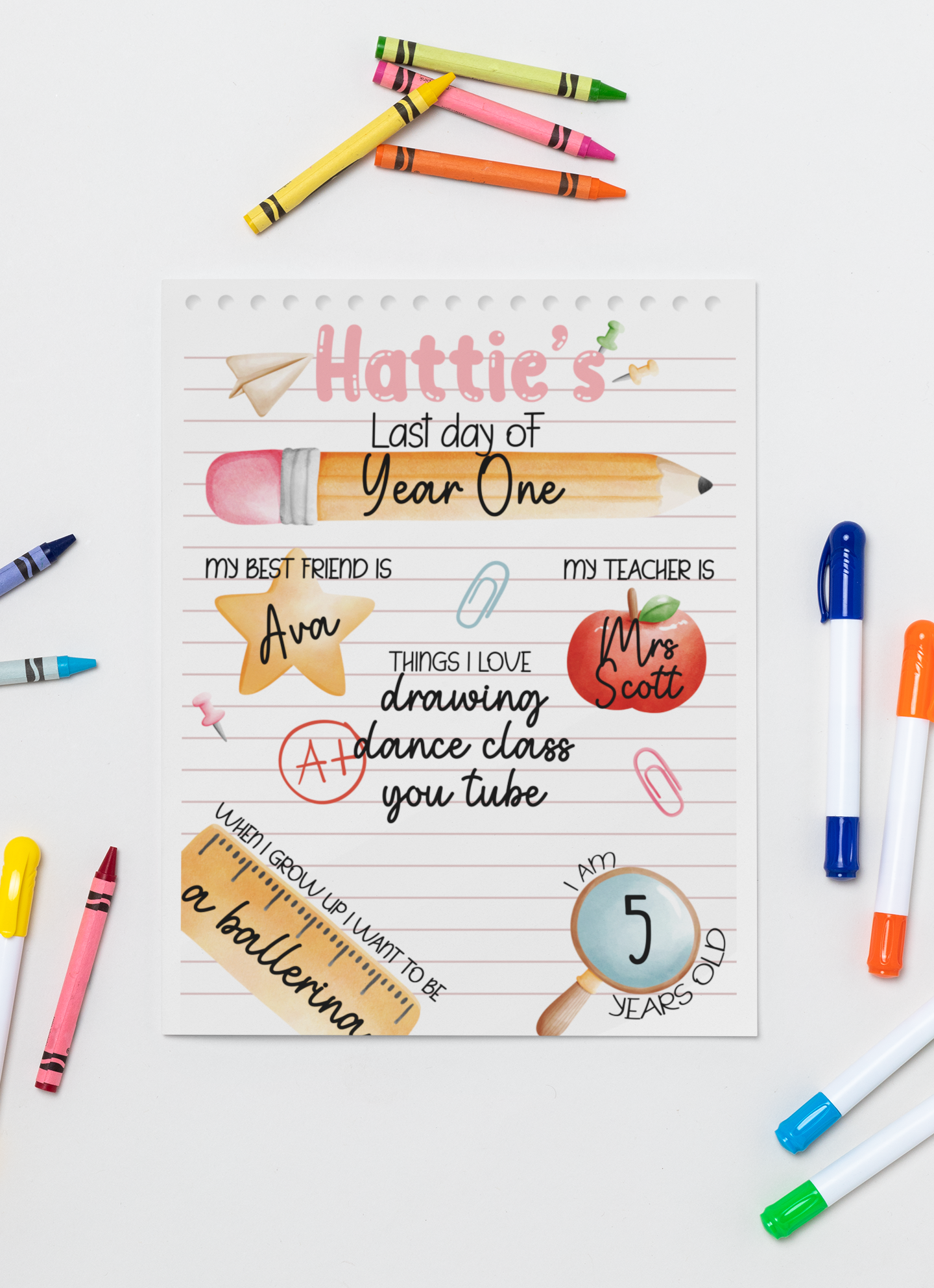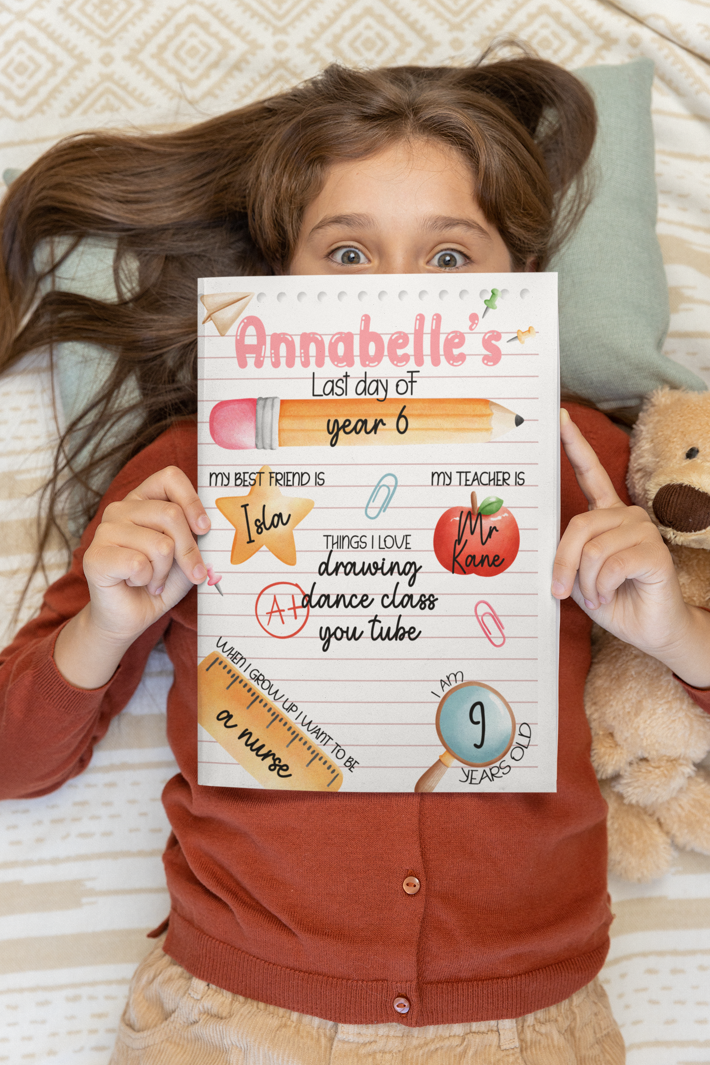Capture your child's growth with the First(or last) Day Of School White Board! This glossy mat with an exciting 'My First Day' graphic is designed to be used over and over again, letting you take a photo each year of your child on their first day of school and watch them grow.