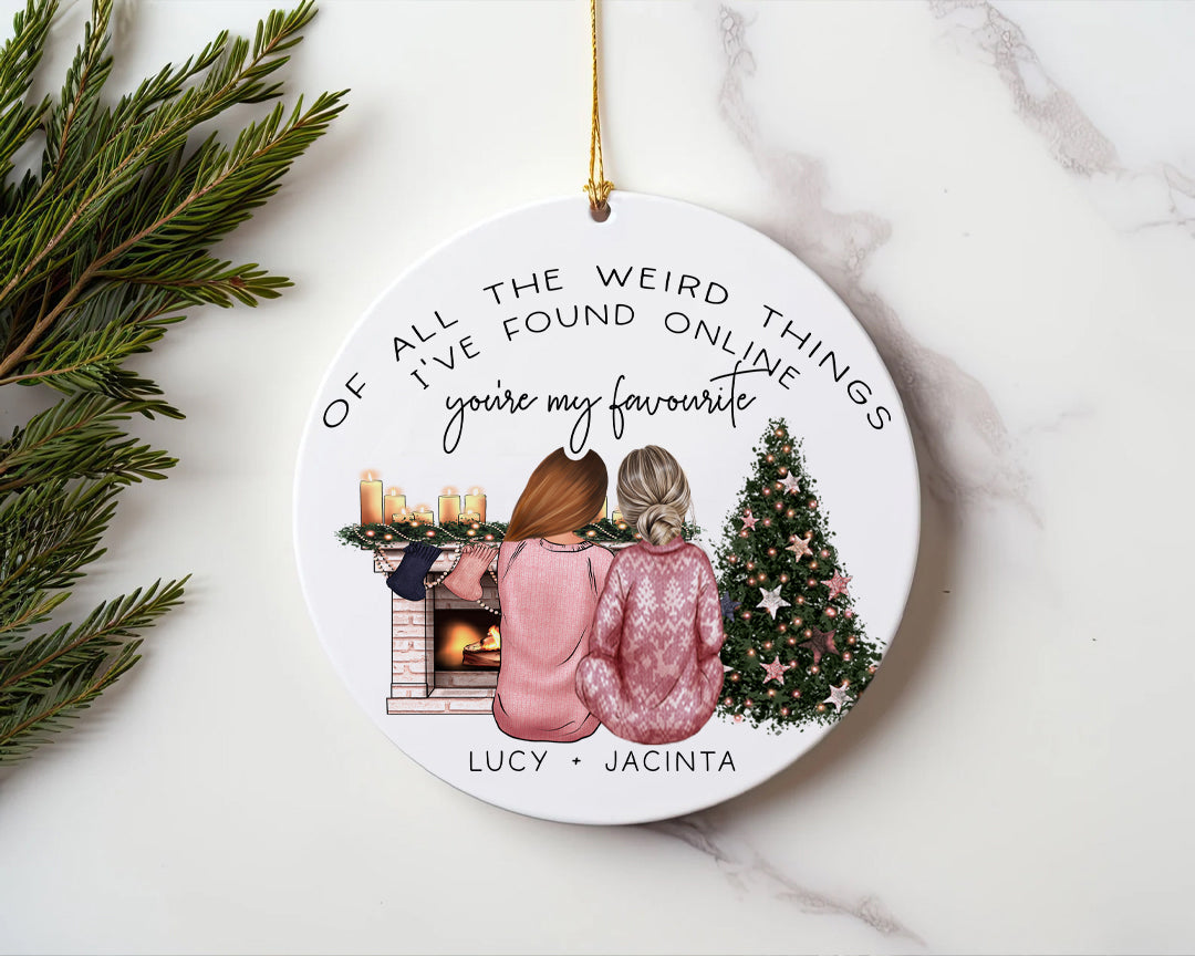 Funny Boyfriend Girlfriend Christmas Tree Bauble - "Of All The Weird Things I Found Online, You're My Favourite"