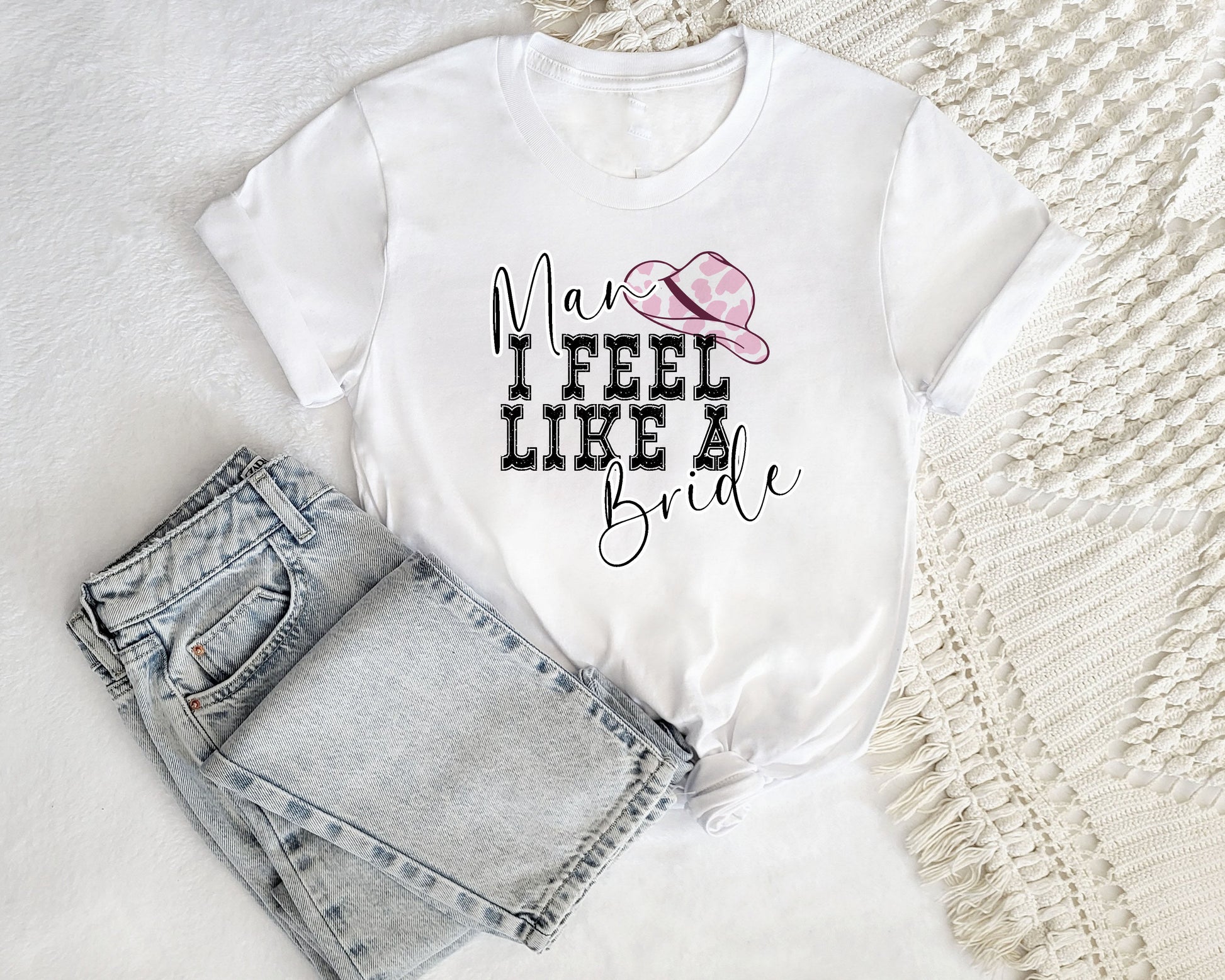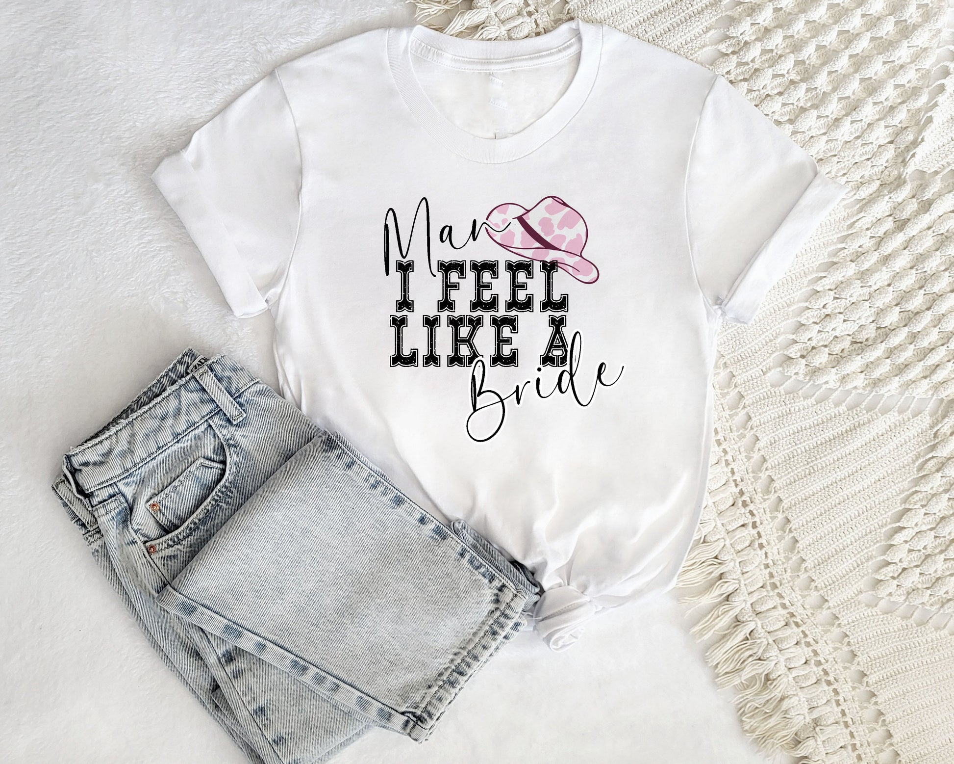 Yeehaw, partner! Bring some sass to your celebrations with these fun and fabulous “Man, I Feel Like…” t-shirts! Whether you’re the bride, bridesmaid, maid of honor, or just feel like partying, this cowgirl-Barbie western mashup will have you looking extra at every bachelorette party, hen night, or wild night out.