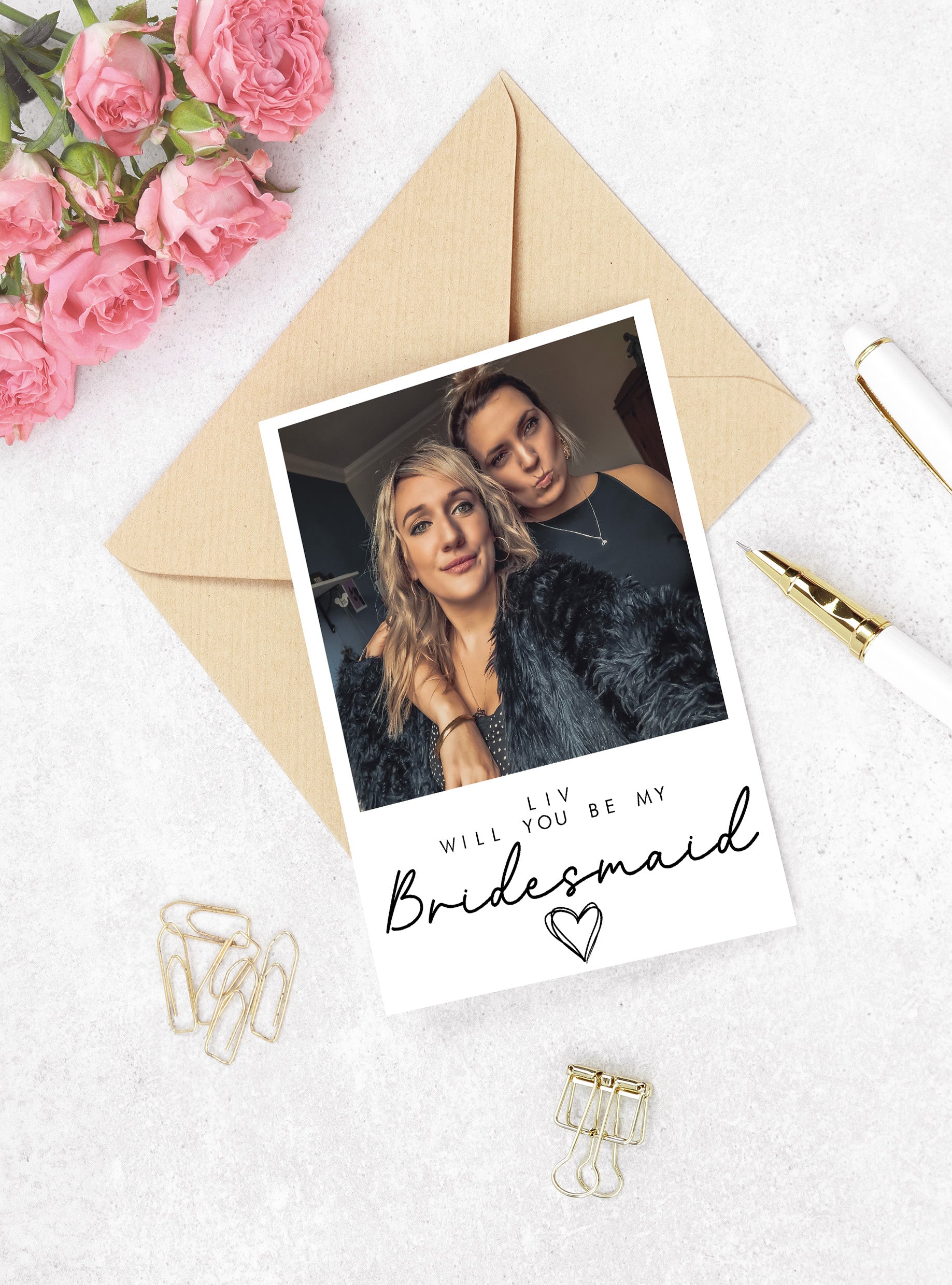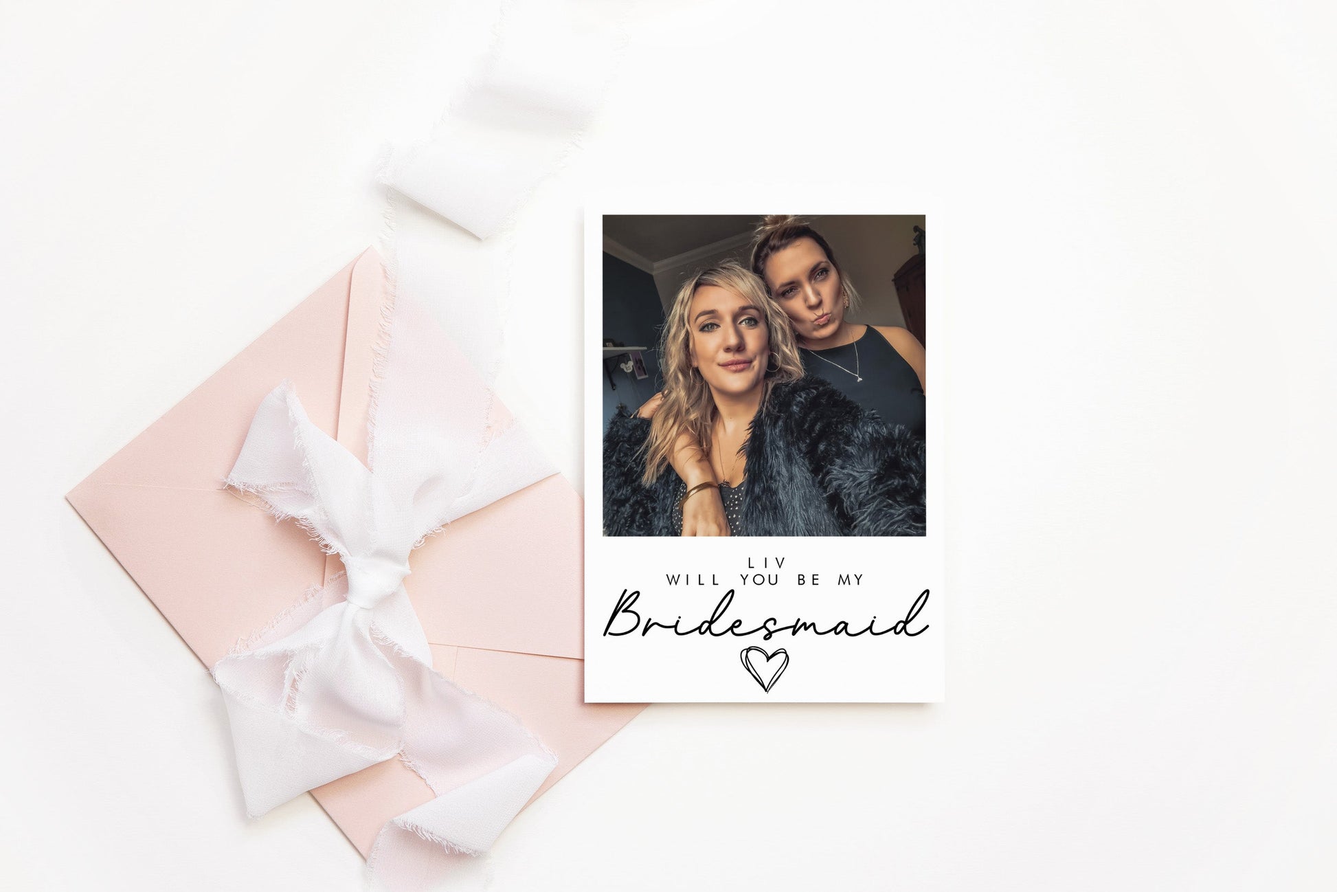 Ask your favourite people to be part of your bridal party in a really fun way with these super cute photo polaroid style photo cards. Printed on Gloss photo card in a choice of sizes: 4x6” or 5x7”. THIS IS LISTING IS FOR 5x7" PRINT