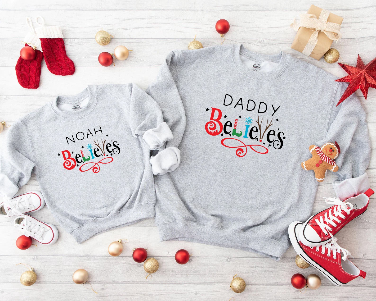 Personalised "Believes" Christmas Jumper, Custom Made Christmas Sweater