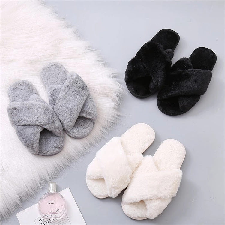 Women Home Slippers Winter Warm Shoes Woman Slip on Flats Slides Female Faux Fur Slippers