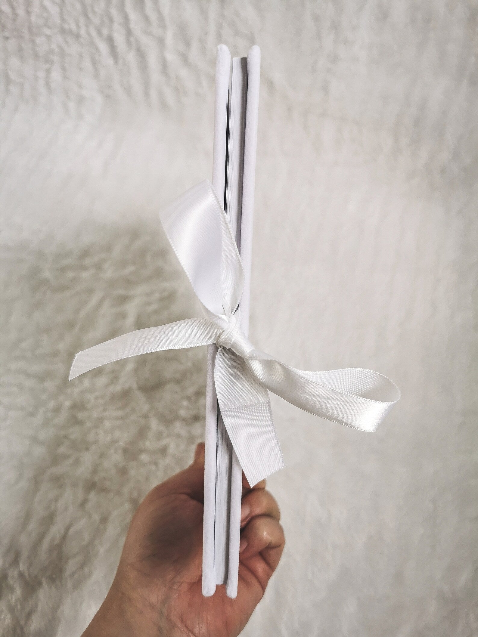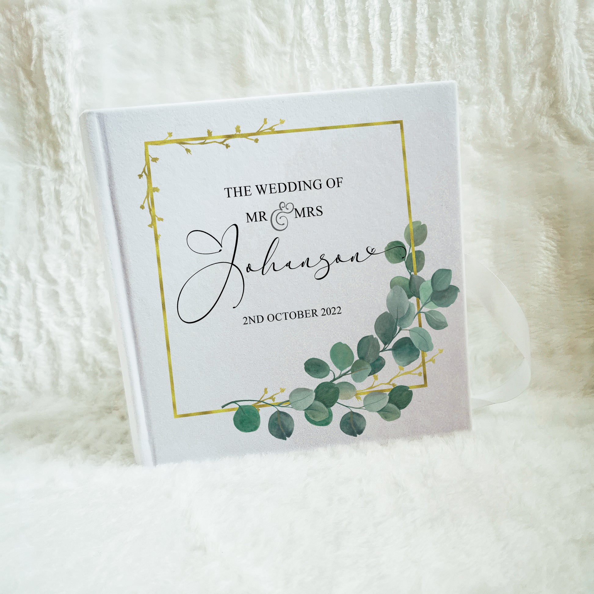 Personalised luxury white velvet guestbooks, make the perfect engagement present for the happy couple to be or the perfect addition to your wedding day. Each book comes with a white satin ribbon, allowing you to tie your perfect memories and well wishes away safely.