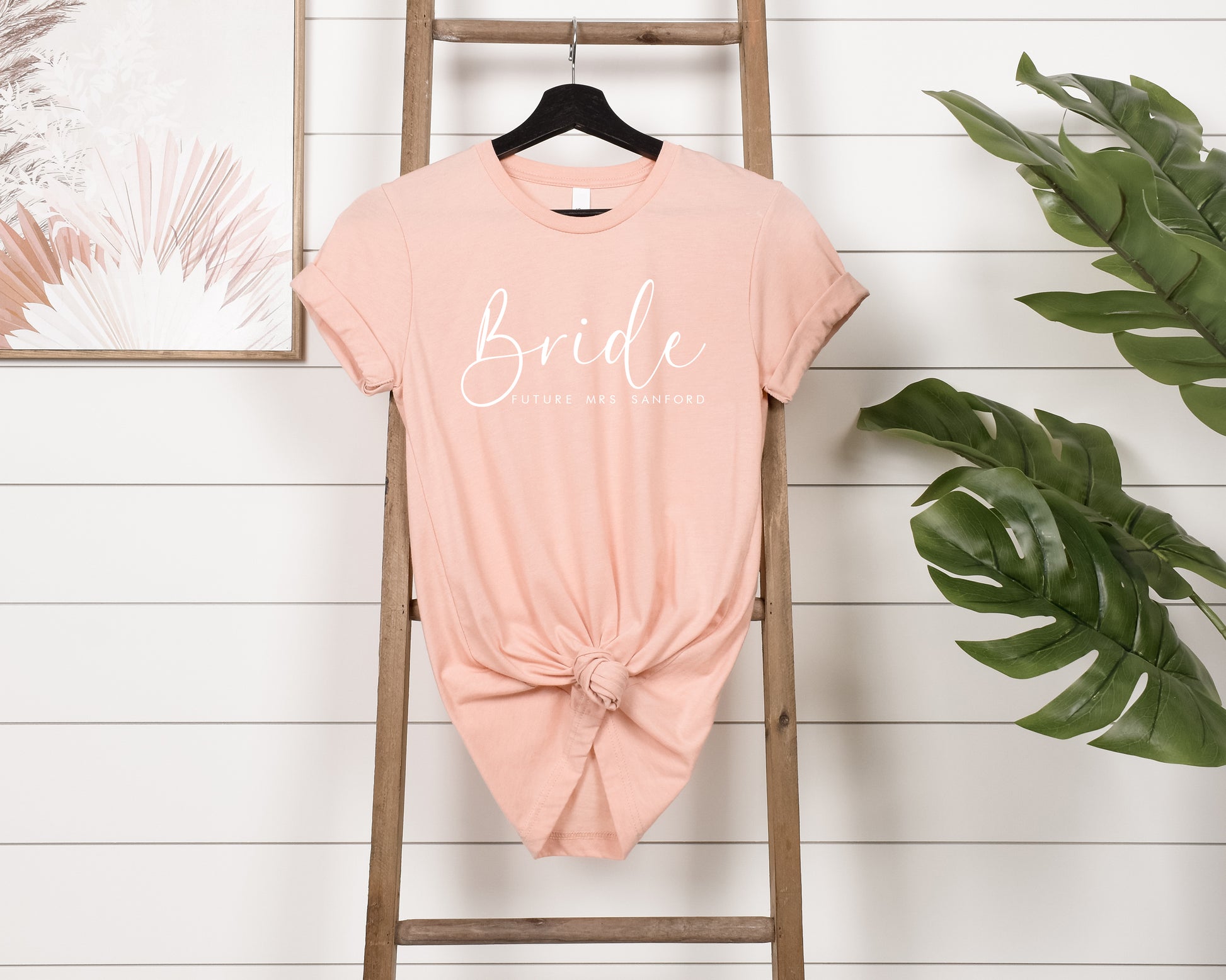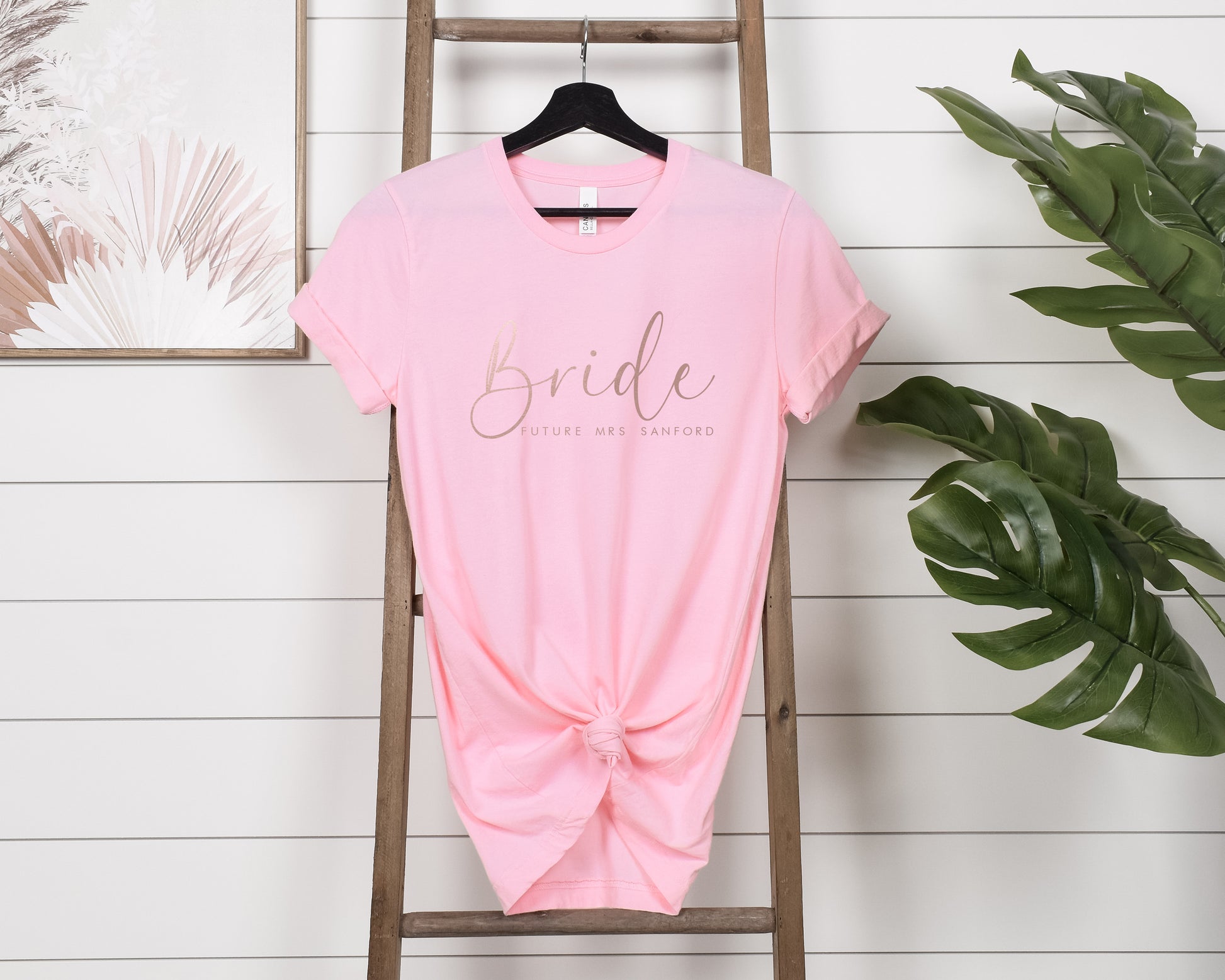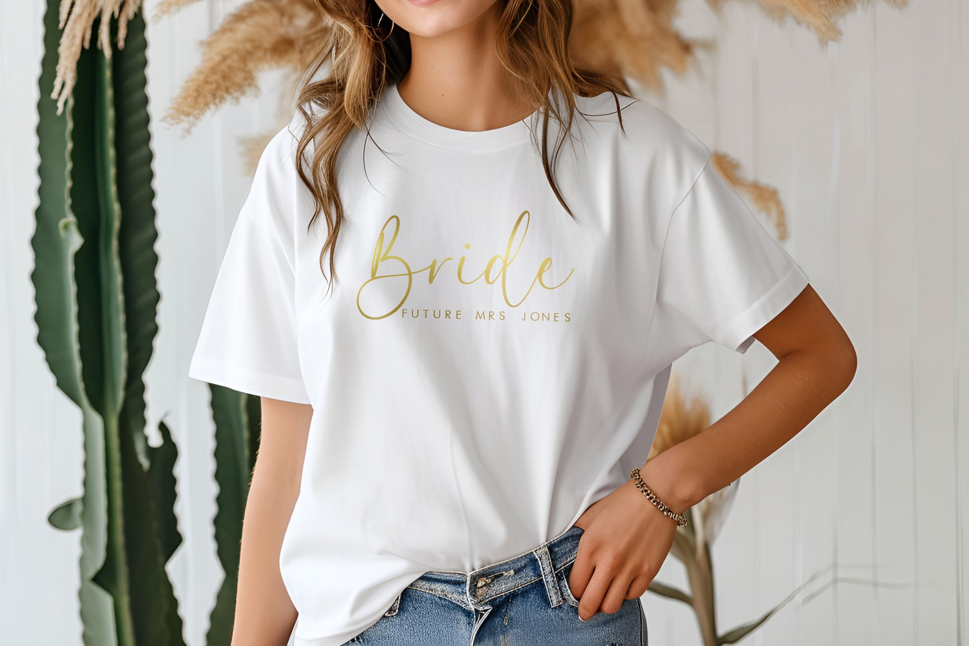 Future Mrs. and looking gorgeous! 🌸👰 Celebrate your journey to 'I do' in style with our beautiful Bride-to-Be tees. Shine on, lovely! 💍✨ #BrideToBe #BeautifulBride #HenParty #WeddingPrep