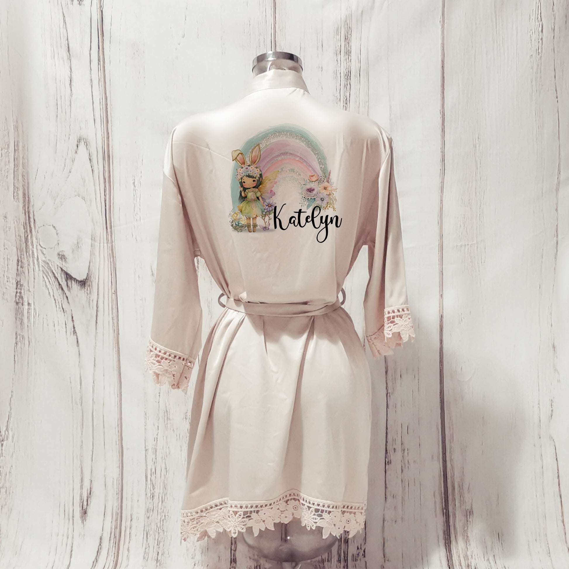 Easter Fairies Design: Our unique selection of sweet Easter fairies designs adds an enchanting touch to your bedtime attire. Choose from our delightful palette of colours - pristine white, elegant champagne, soft blush, and the romantic dusky rose. Each hue is designed to complement the delicate Easter fairy motif, ensuring you feel magical every time you wear them.