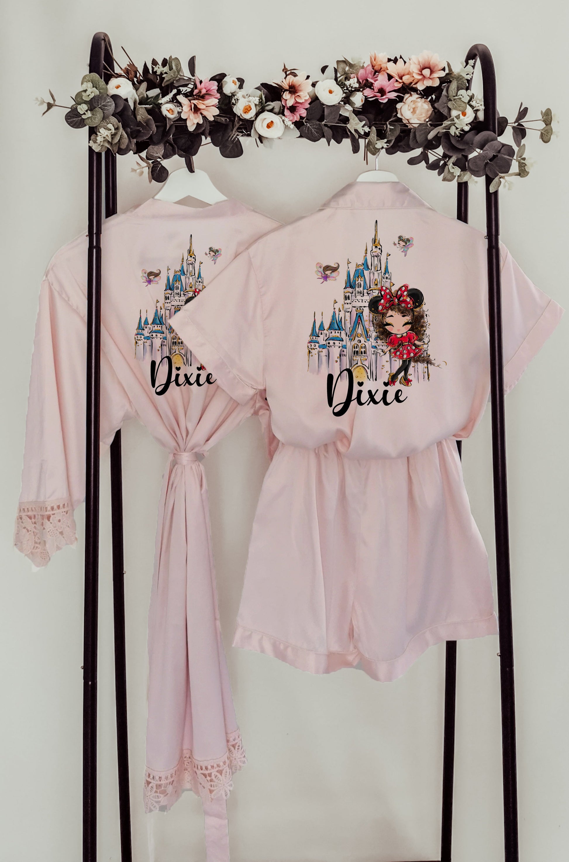 - Satin pyjamas sets includes a button up shirt with a super cute, personalised design on the back and a pair of elasticated waist shorts. There is a details size chart available in the listing images.