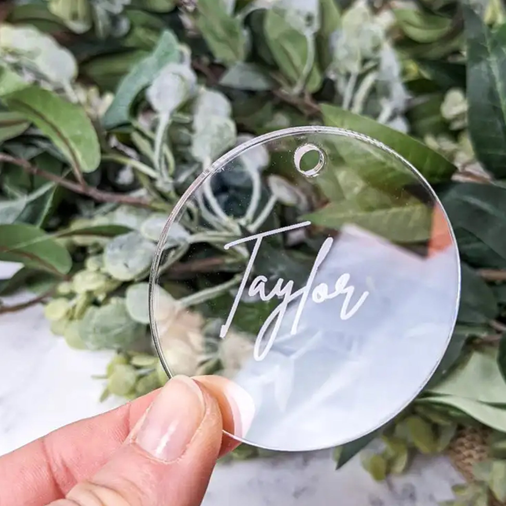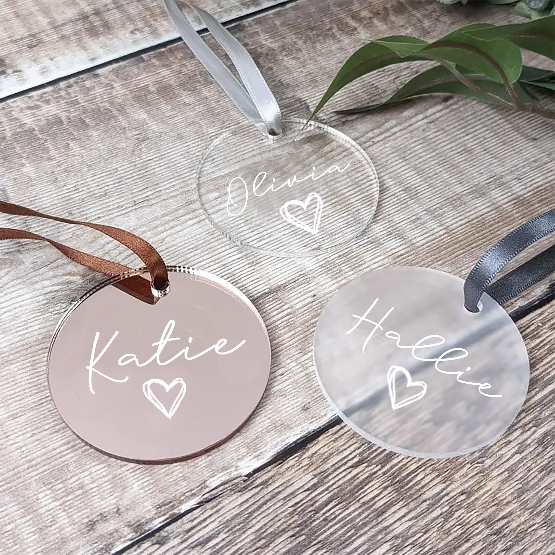 Each disc includes a plain white ribbon to secure the tag to your hanger.