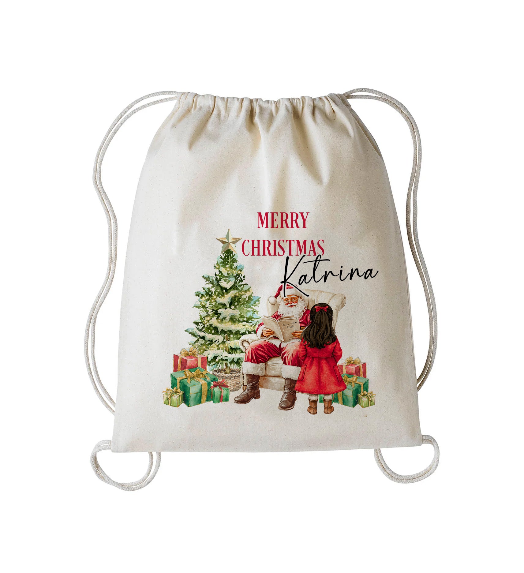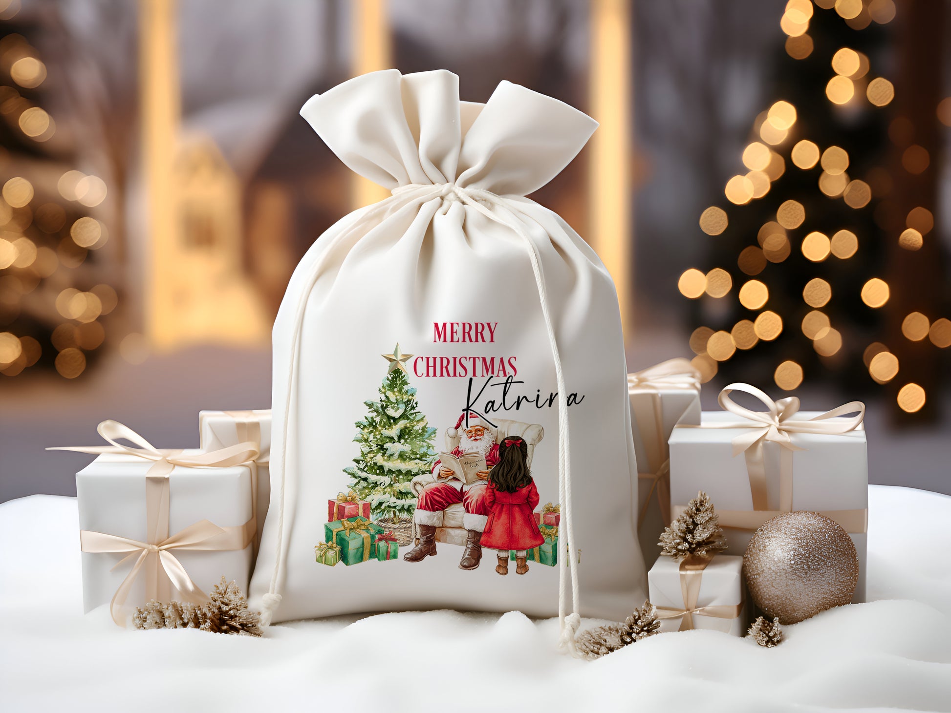 Personalised Traditional Santa Sack, Vintage Christmas Eve Treats Bag
