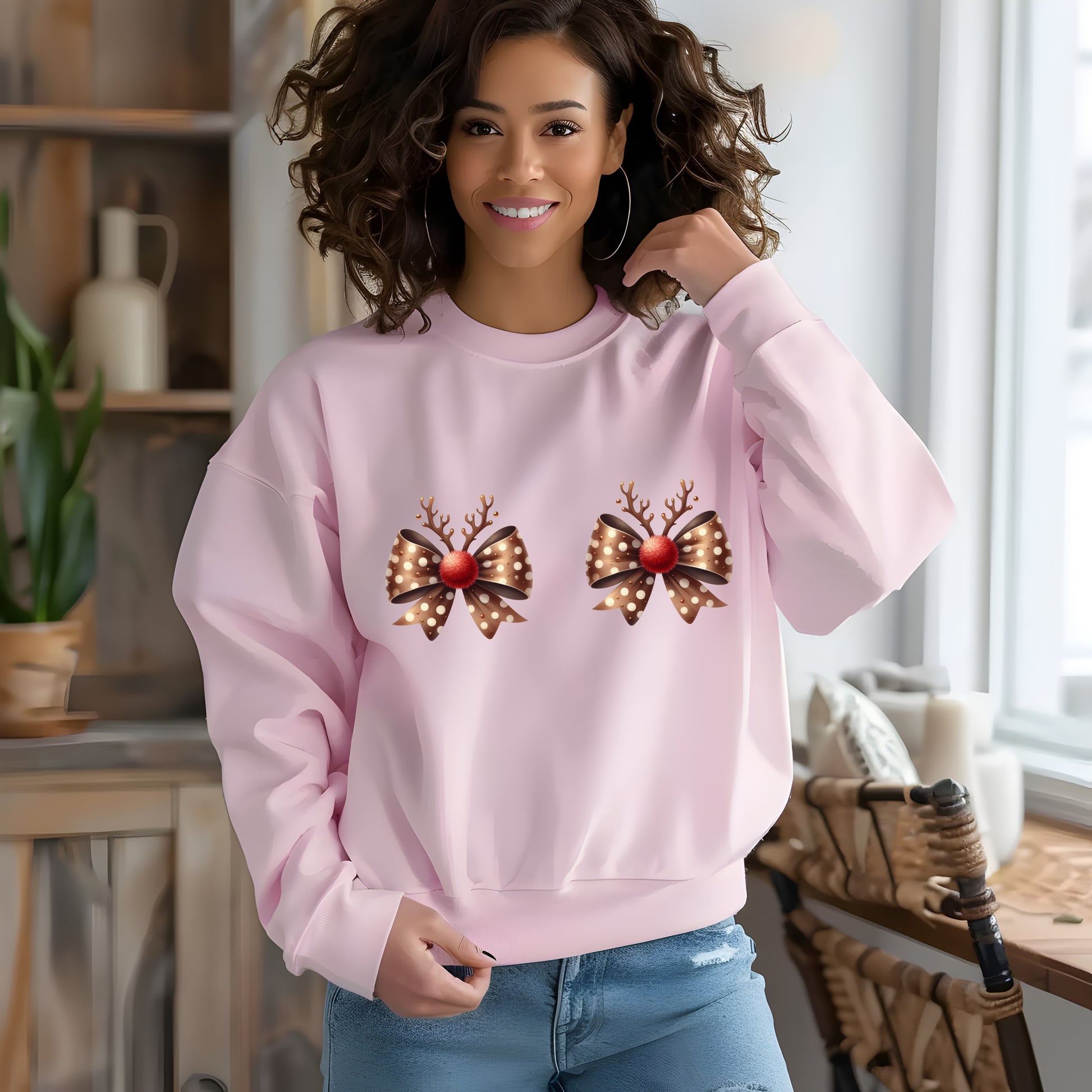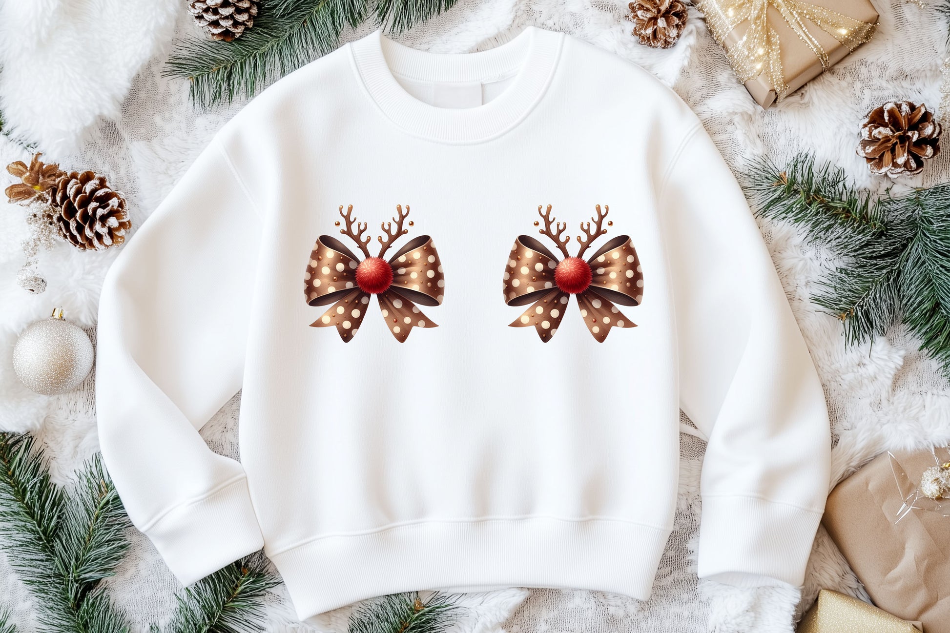 Reindeer Croquette Bow Jumper, Rude Boobies Adult Christmas Day Sweater (Copy)