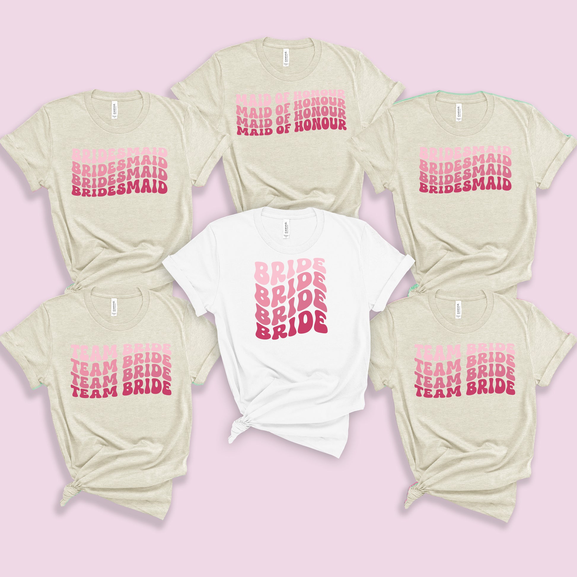 bride squad shirt, team bride tee, retro bride t-shirt, bachelorette party shirt, bridal party matching shirts, groovy bride shirt, 70s bachelorette outfit, wedding party tees, custom bride shirt, fun bridesmaid gift, bride and babes shirts, aesthetic bridal party shirts