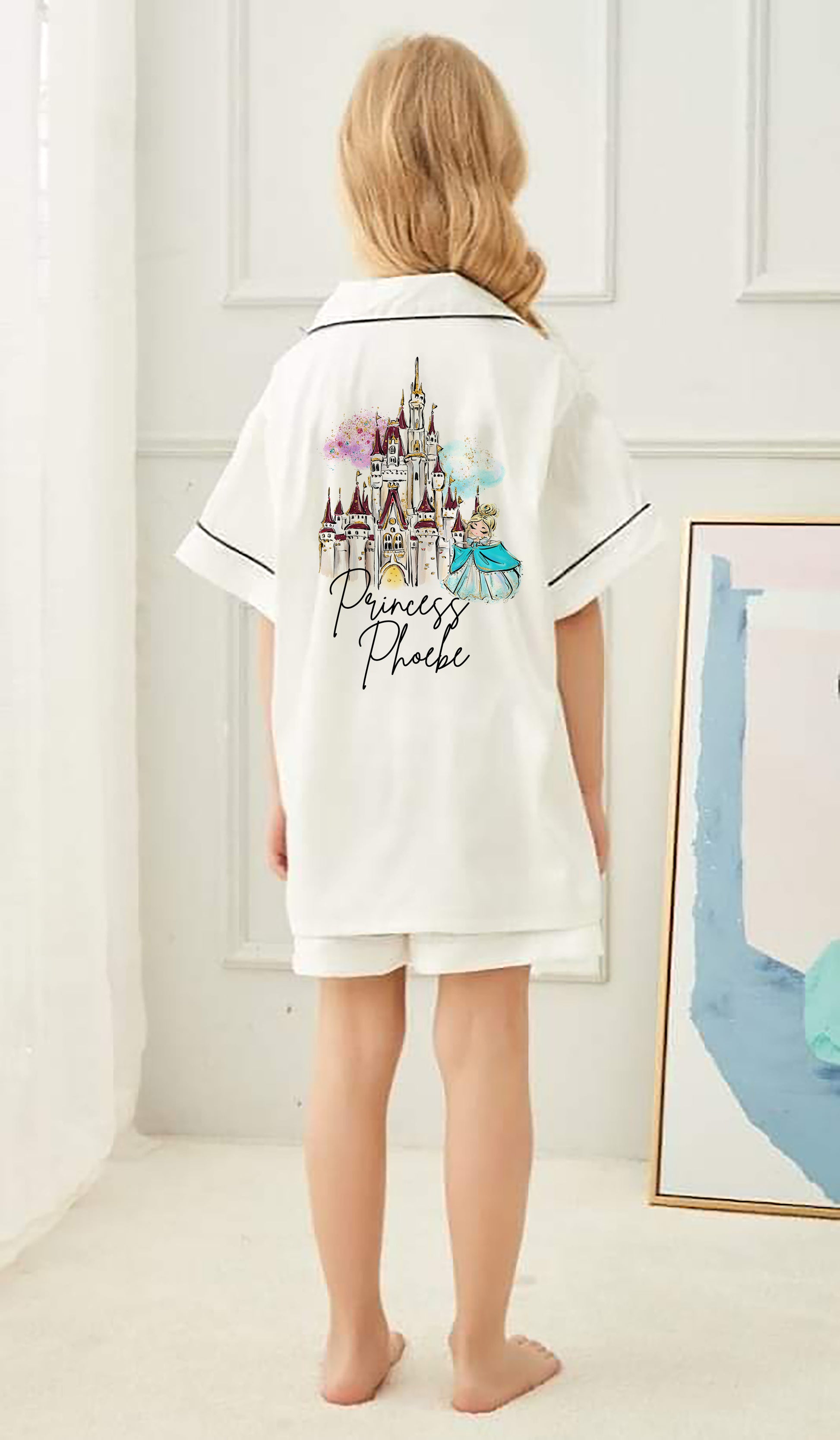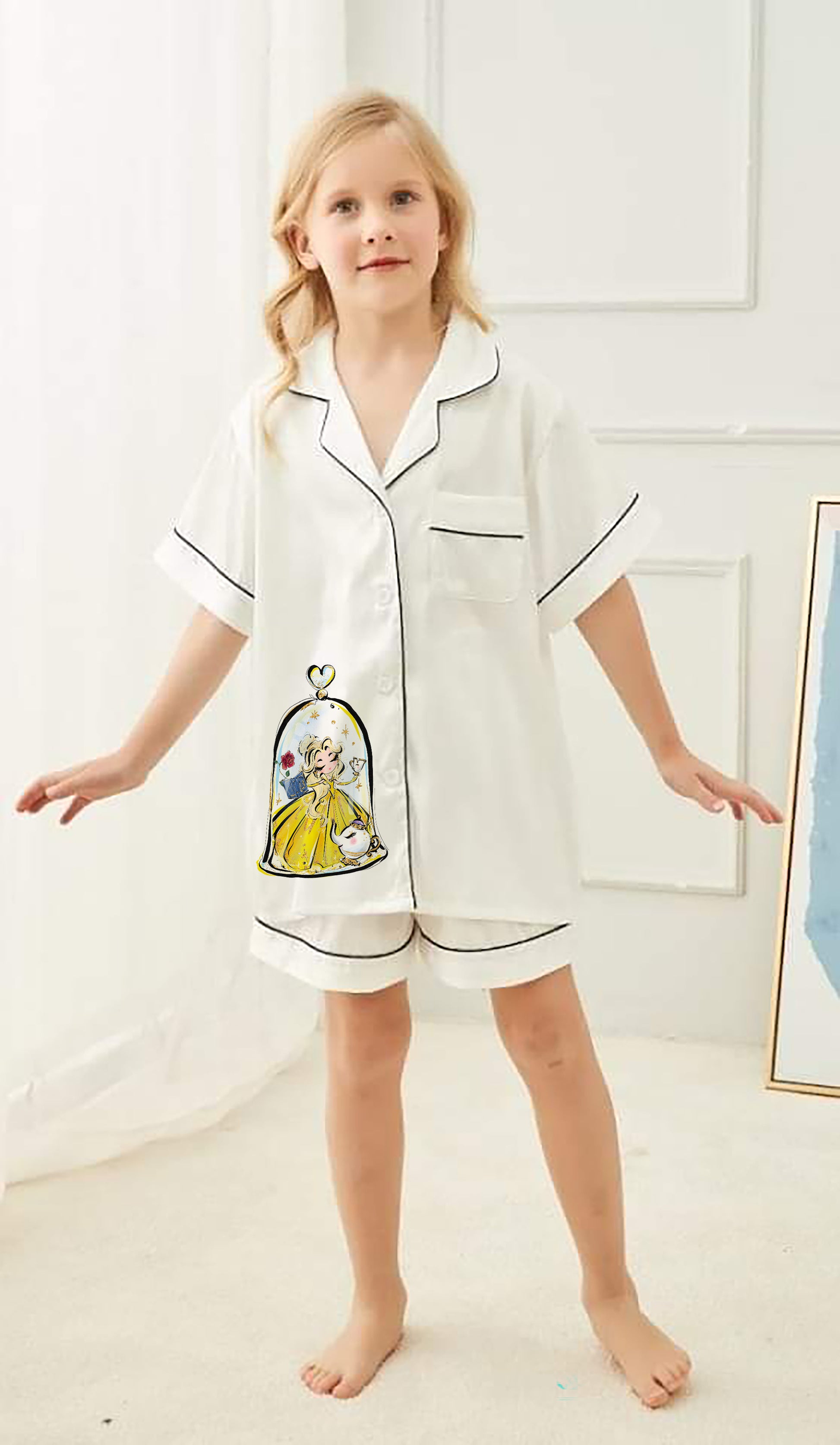 - Satin pyjamas sets includes a button up shirt with a super cute, personalised design on the back and a pair of elasticated waist shorts. There is a details size chart available in the listing images.